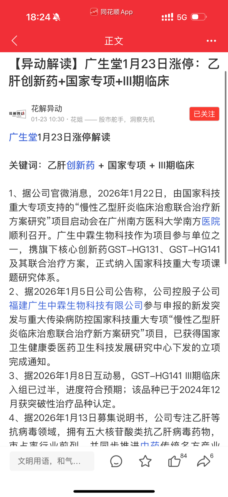 广生堂全球独一无二乙肝药,以20 C m开启主升浪潮