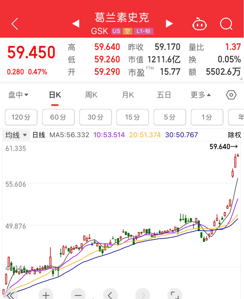 gsk葛兰素史克的上涨也和乙肝新药有关系?