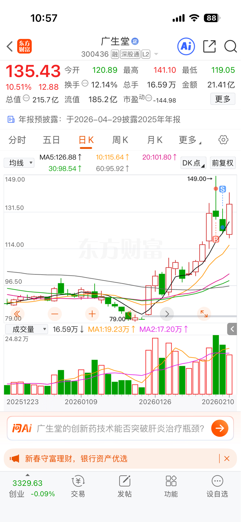 郑重声明:用户在财富号/股吧/博客等社区发表的所有信息(包括但不限于文字、视频、音频、数据及图表)仅代表个人观点,与本网站立场无关,不对您构成任何投资建议,据此操作风险自担。请勿相信代客理财、免费荐股和炒股培训等宣传内容,远离非法证券活动。请勿添加发言用户的手机号码、公众号、微博、微信及QQ等信息,谨防上当受骗!