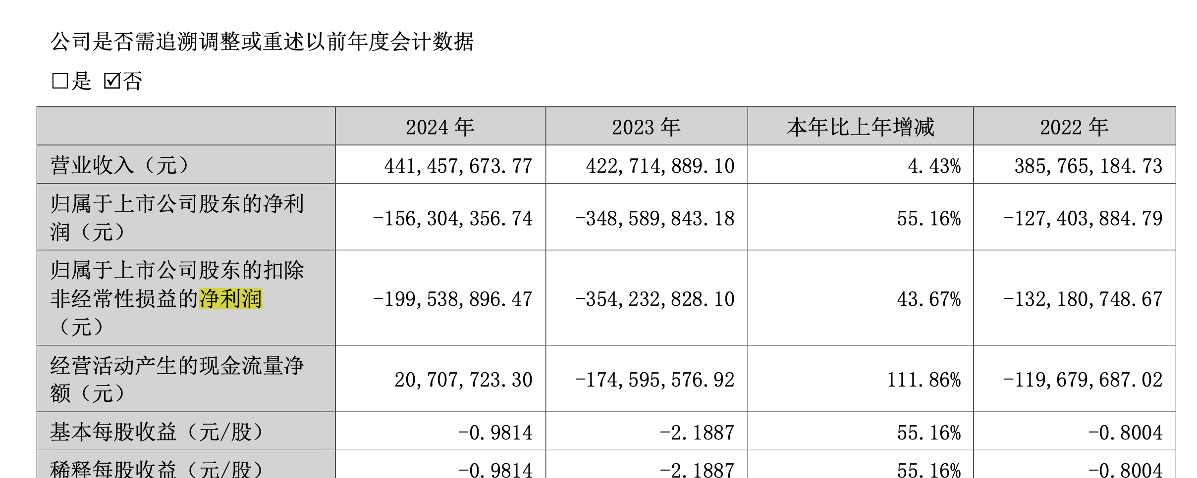 财报显示,2021年-2024年,广生堂归属于上市公司股东的净利润分别为-0.35亿元、-1.27亿元、-3.49亿元、-1.56亿元。2025年,广生堂预计归属于上市公司股东的净利润为-1.7亿元到-2.4亿元。