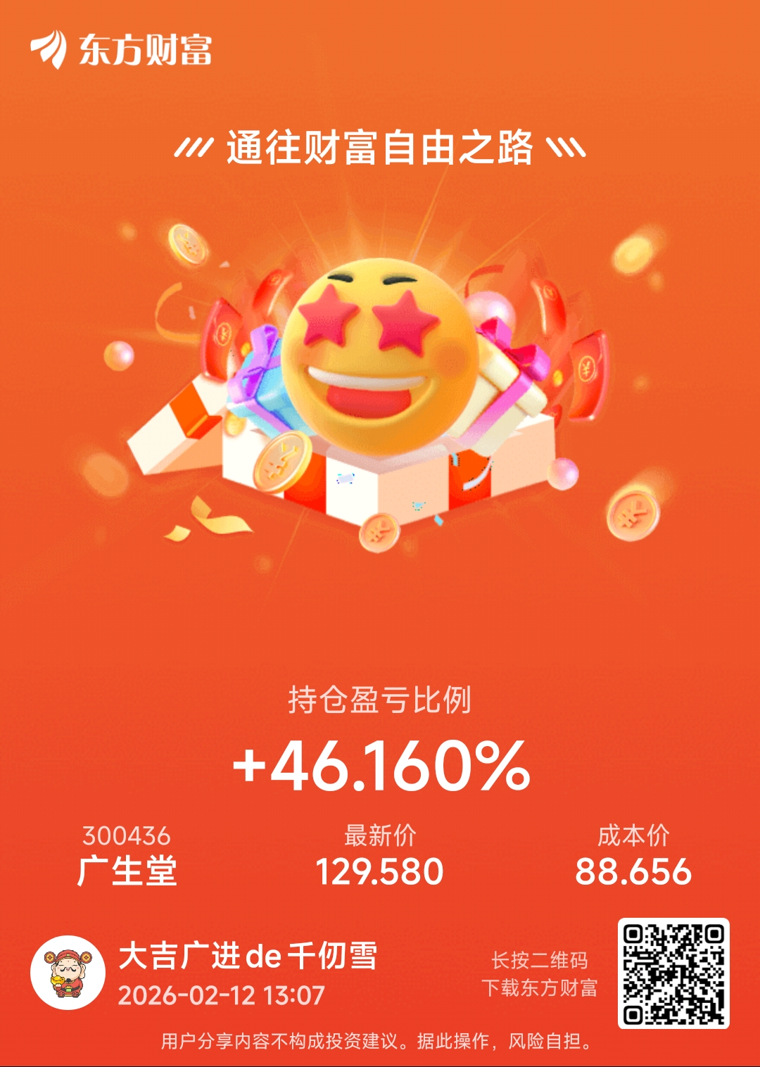温馨提示: 1.根据《证券法》规定,禁止编造、传播虚假信息或者误导性信息,扰乱证券市场;2.用户在本社区发表的所有资料、言论等仅代表个人观点,与本网站立场无关,不对您构成任何投资建议。用户应基于自己的独立判断,自行决定证券投资并承担相应风险。《东方财富社区管理规定》