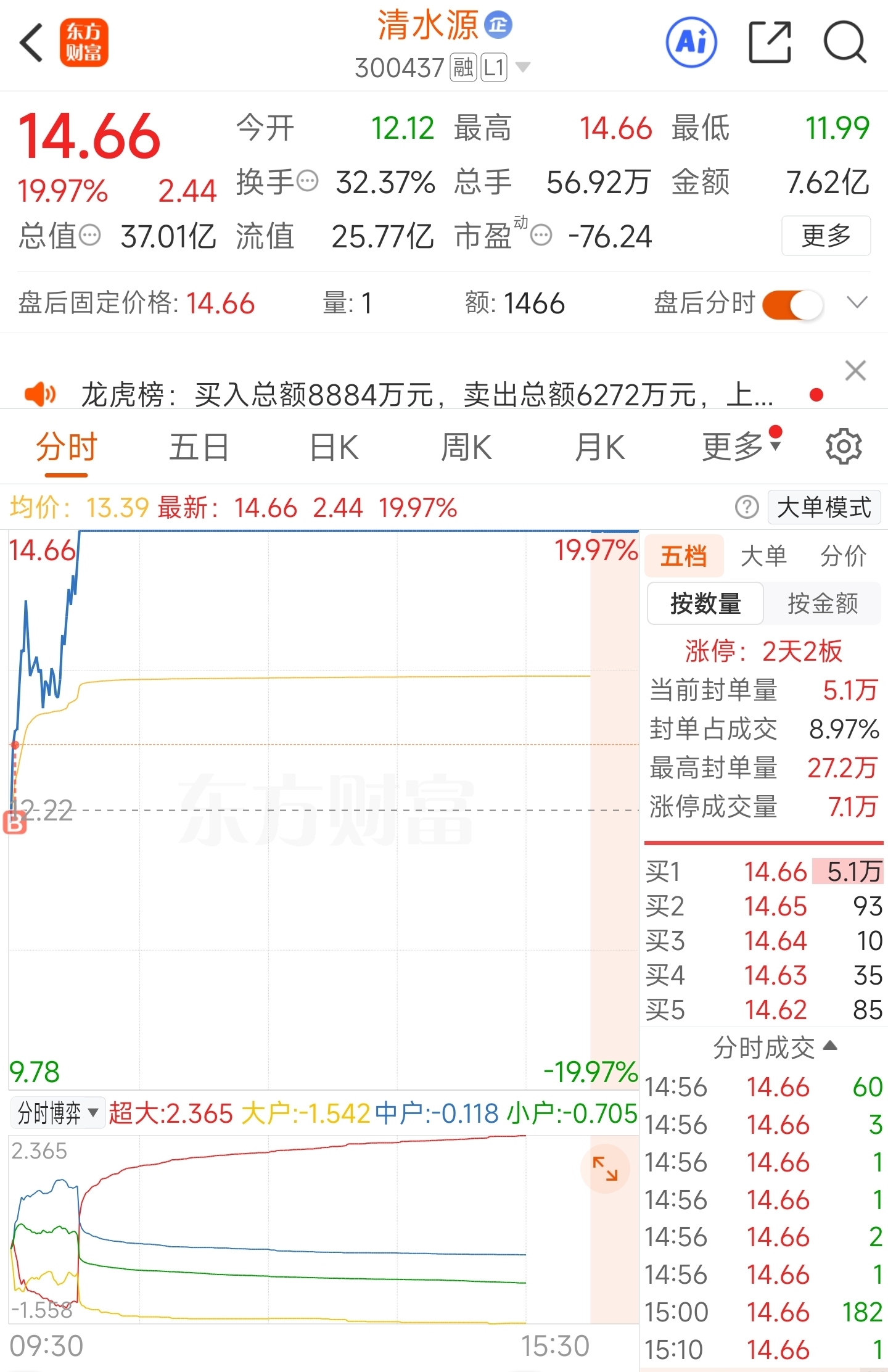 $清水源(SZ300437)$ 今天买进来的,慌得一批