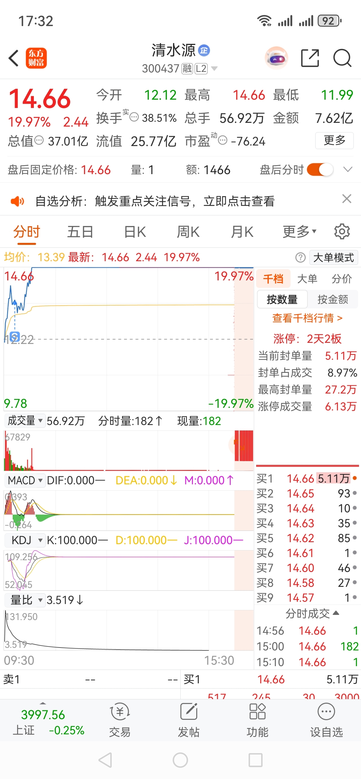 $清水源(SZ300437)$ 今天太狠了,负反馈太多,我还想着如果回碰黄金线了,估计也没行情了,看那架势就是要回踩黄金线的架势,我才卖的。卖飞了,我是不坚定的筹码。昨天半路买和打板买的,没多少利润垫底,今天又是个低开吓人。