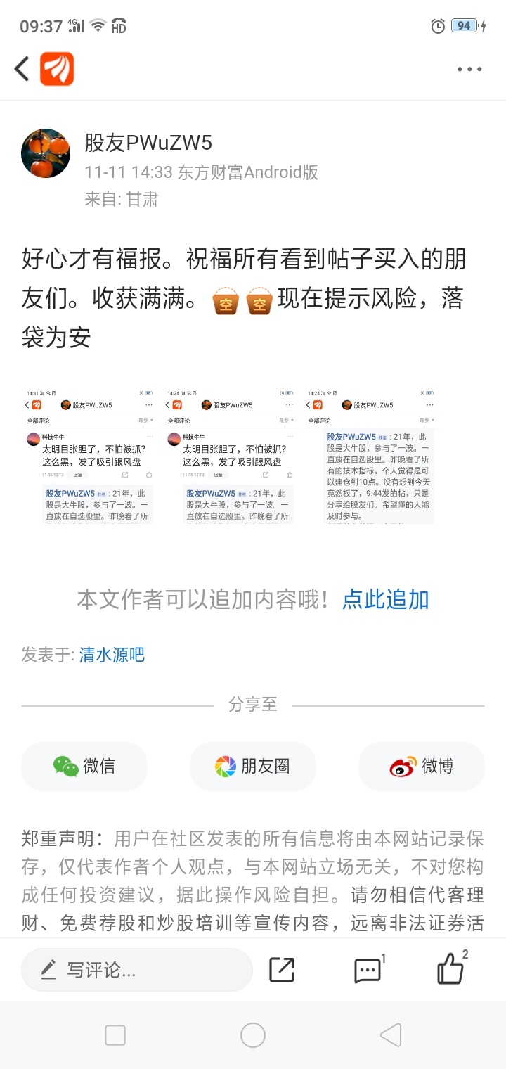 温馨提示: 1.根据《证券法》规定,禁止编造、传播虚假信息或者误导性信息,扰乱证券市场;2.用户在本社区发表的所有资料、言论等仅代表个人观点,与本网站立场无关,不对您构成任何投资建议。用户应基于自己的独立判断,自行决定证券投资并承担相应风险。《东方财富社区管理规定》