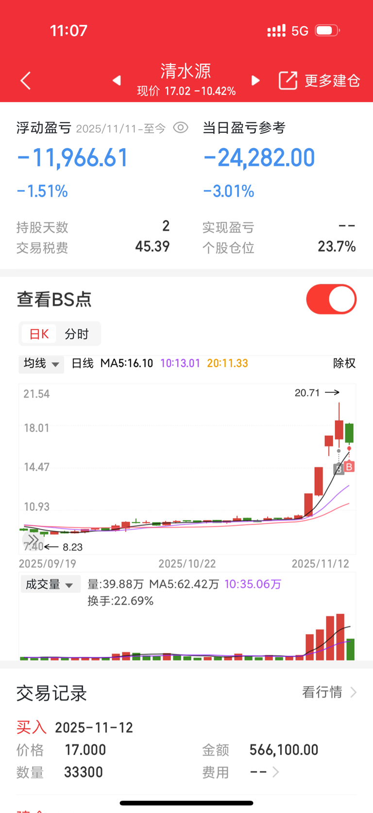 还好昨天买的少,大把可以加,降低成本$清水源(SZ300437)$
