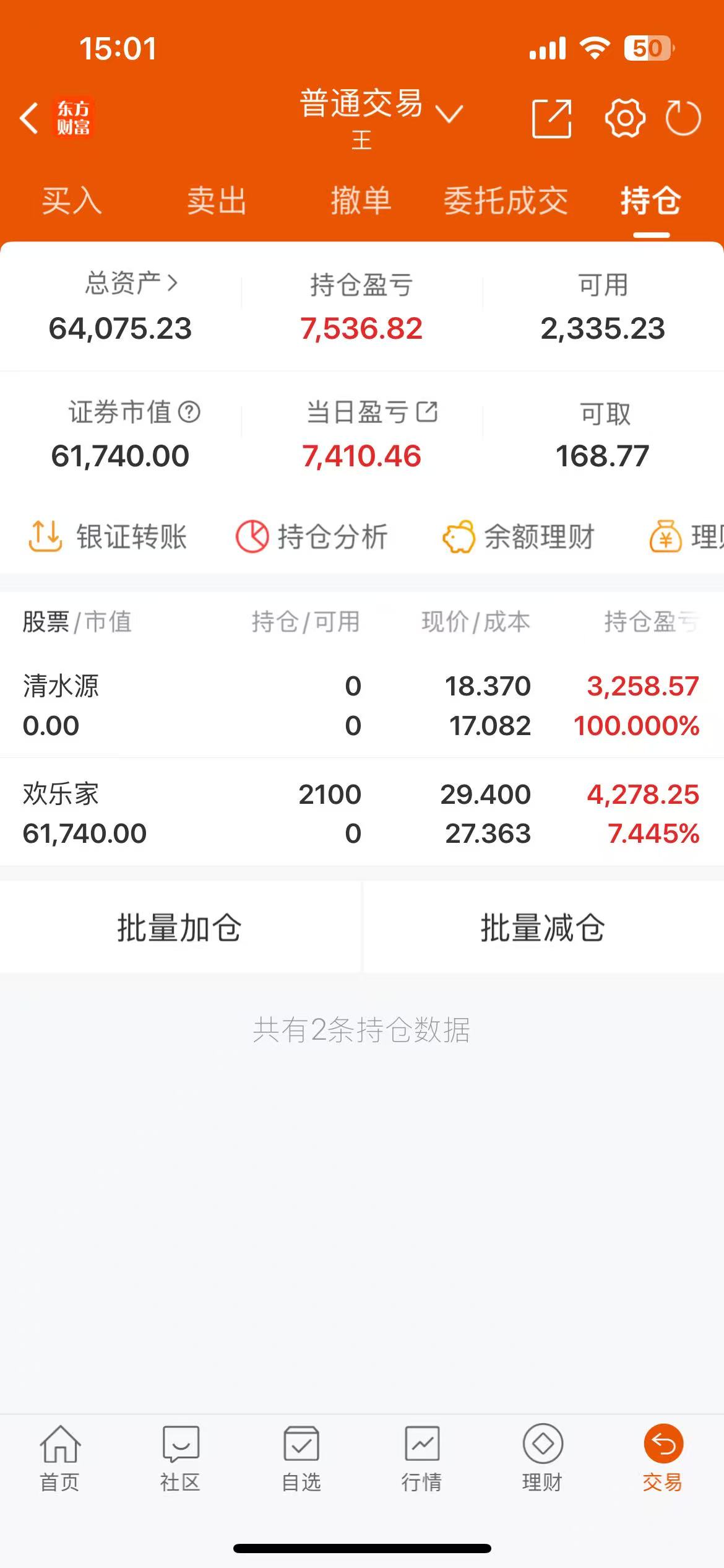 昨天抄底的清水源今天卖出,然后又马上抄底欢乐家,这样就顺利完成百分之15一天的利润。