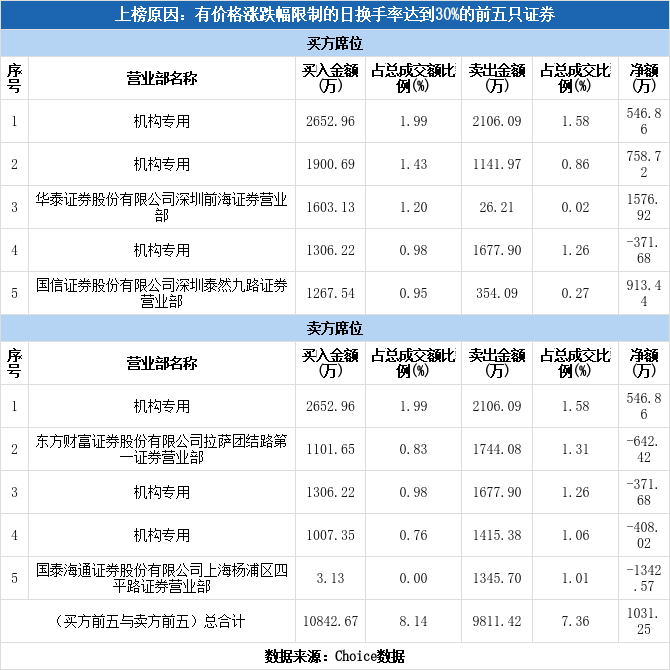 深交所2025年11月17日交易公开信息显示,清水源因属于有价格涨跌幅限制的日换手率达到30%的前五只证券而登上龙虎榜。清水源当日报收19.59元,涨跌幅为14.09%,换手率40.77%,振幅14.68%,成交额13.33亿元。