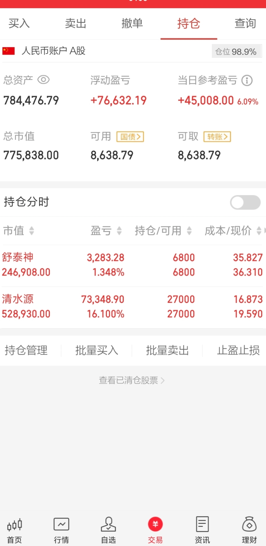 记录每一天30万炒家(第89天)星期五、目前78.4舒泰神清水源;持仓不变!个人
