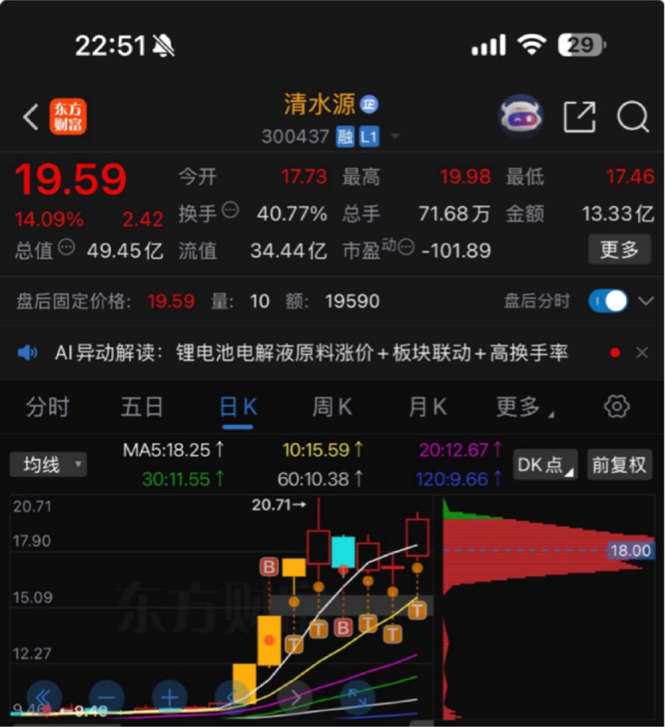 本月重点操作了两只票,一个清水源,一个中能电气,目前两只都是超盈利状态,这个位置