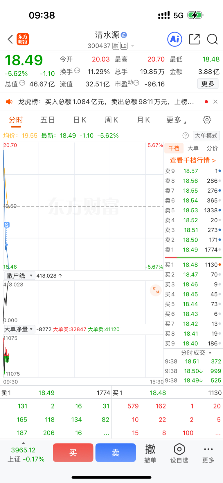 $清水源(SZ300437)$ 有毒啊,五个点没卖,-3卖了