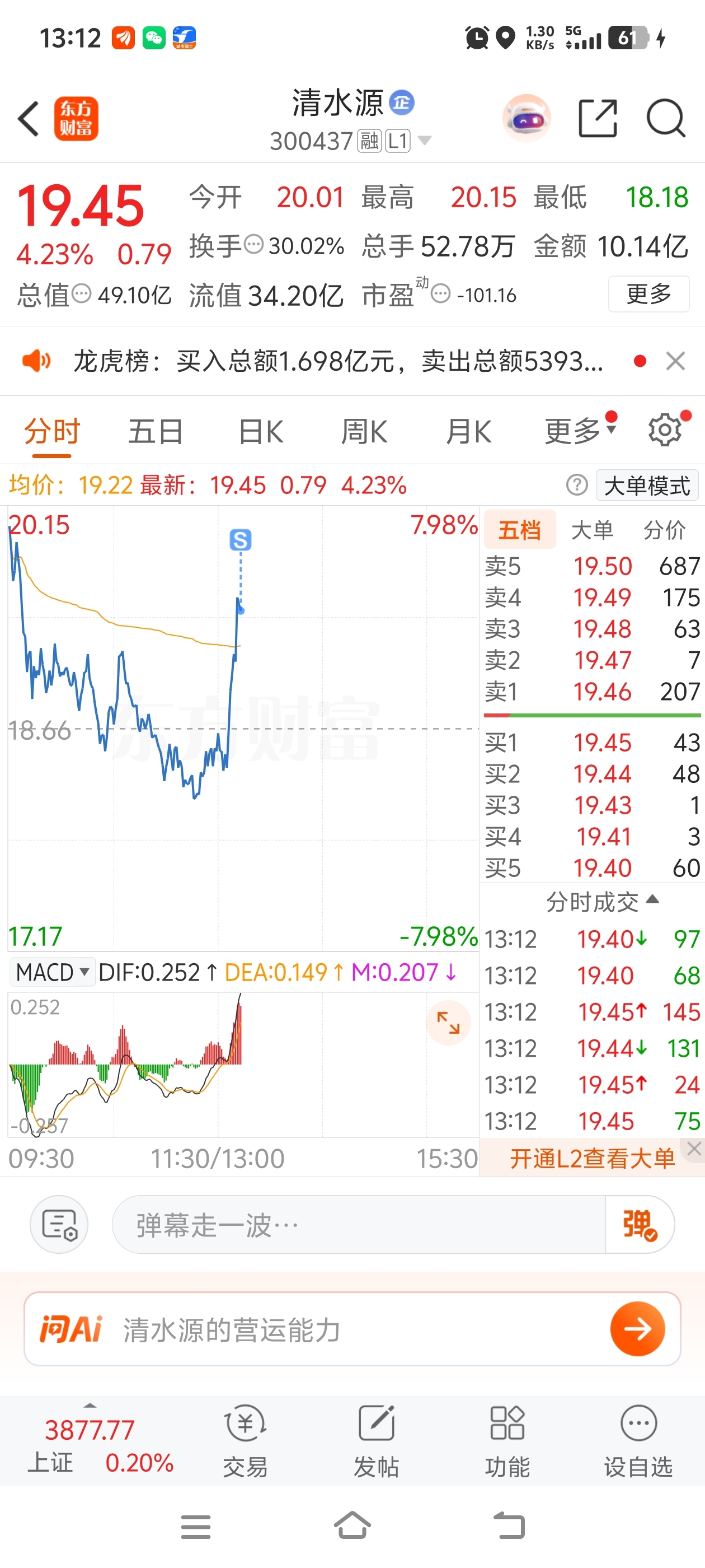 $清水源(SZ300437)$ 早上没有走,现在走晚了吗?
