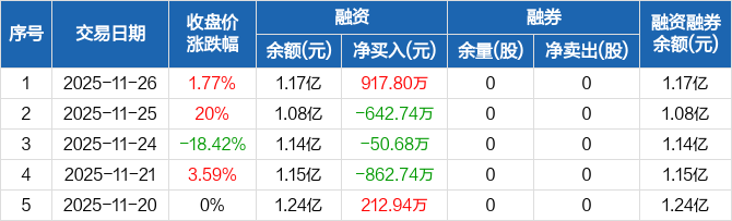 清水源:融资净买入917.8万元,融资余额1.17亿元(11-26)