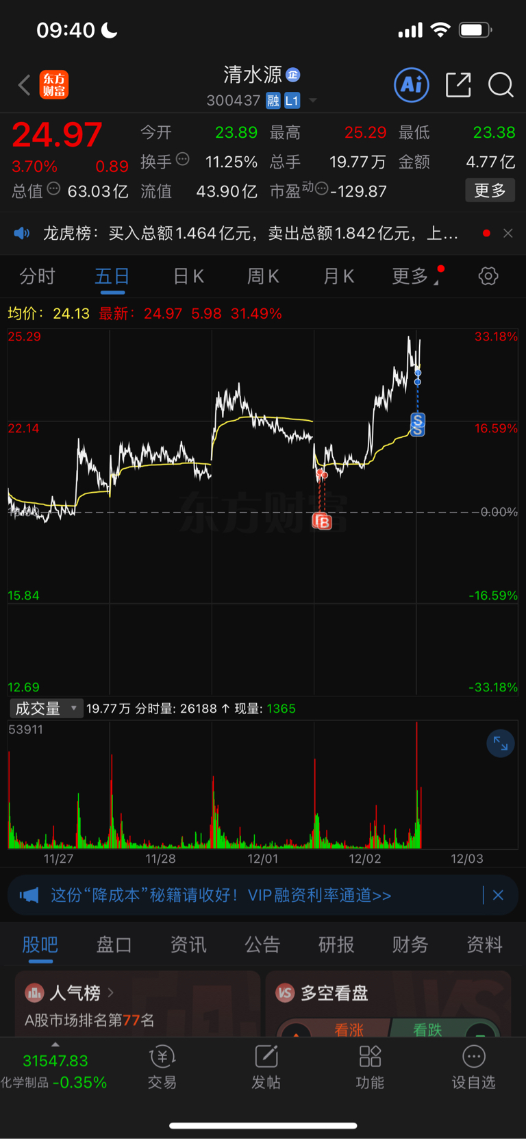 $清水源(SZ300437)$ 人永远赚不到认知外的钱
