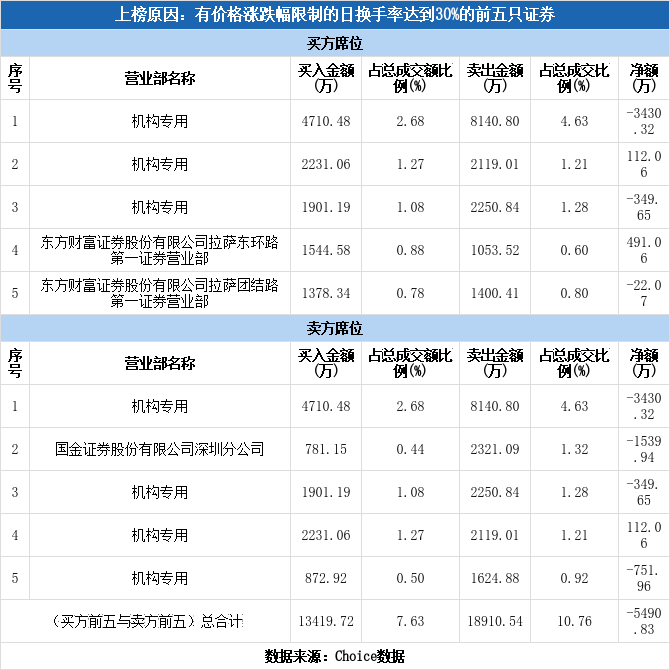 龙虎榜数据显示,今日共7个机构席位出现在龙虎榜单上,分别位列买一、买二、买三、卖一、卖三、卖四、卖五,合计净卖出4419.88万元,占龙虎榜净卖额的80.5%。除此之外还有南网数字、同庆楼、平潭发展等30只个股榜单上出现了机构的身影,其中10家呈现机构净买入,获净买入最多的是四方达,净买额为5607.28万元;20家呈现机构净卖出,其中遭净卖出最高的为南网数字,净卖额为1.88亿元。