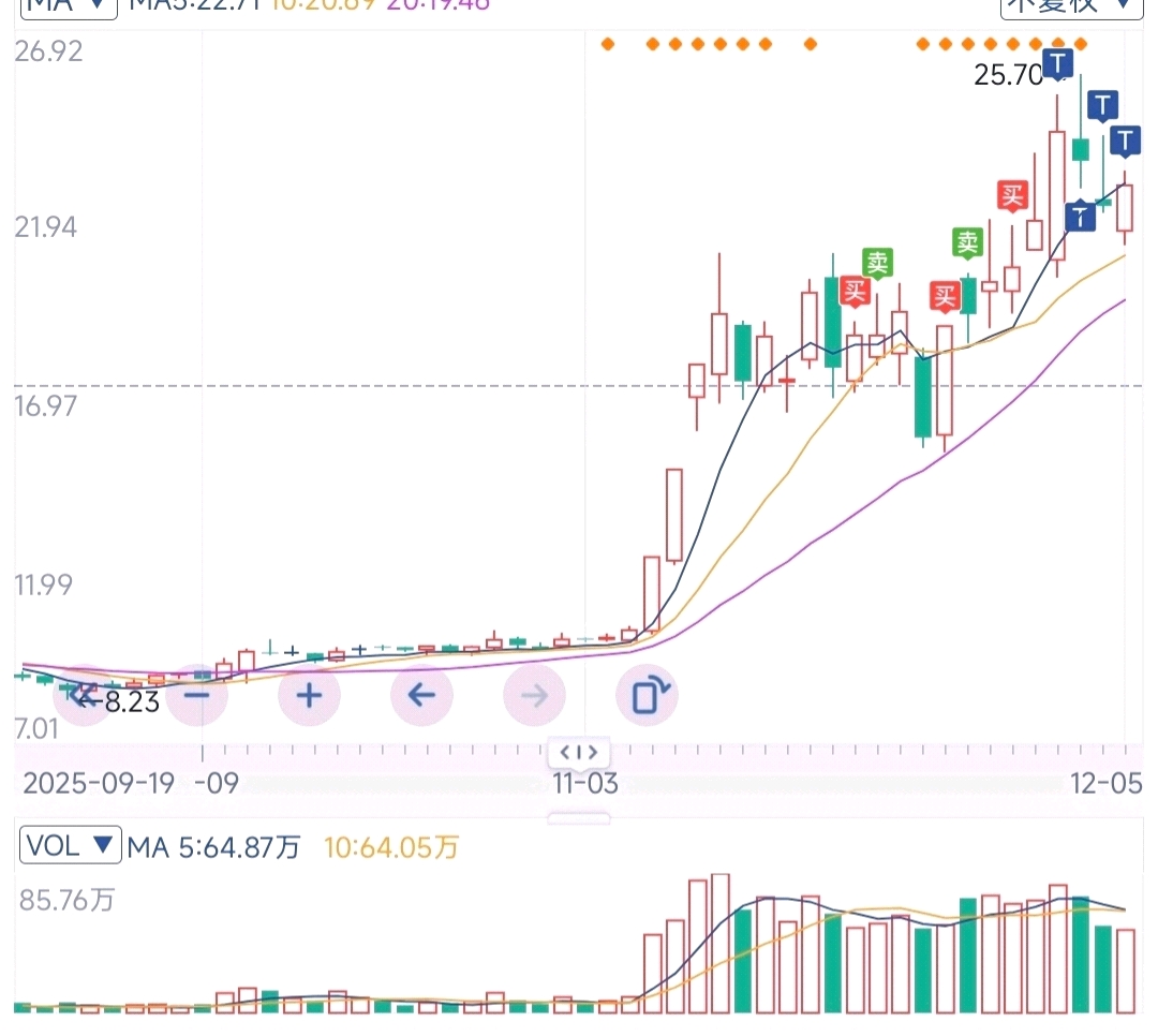 TT,今天买点可以,几乎买在最低点了,卖早了,连续杀两天尾盘,杀怕了,下周来个大阳吧,T得太辛苦了