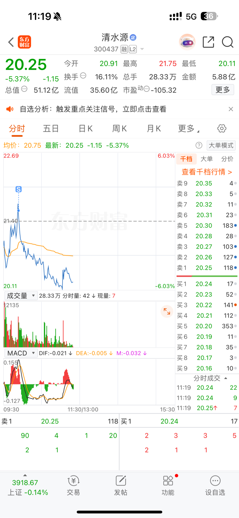 $清水源(SZ300437)$ 昨天低点进的,还好不贪,两个点够了,不亏就是赚