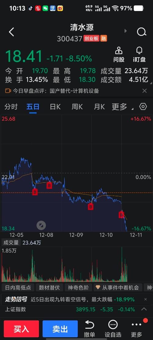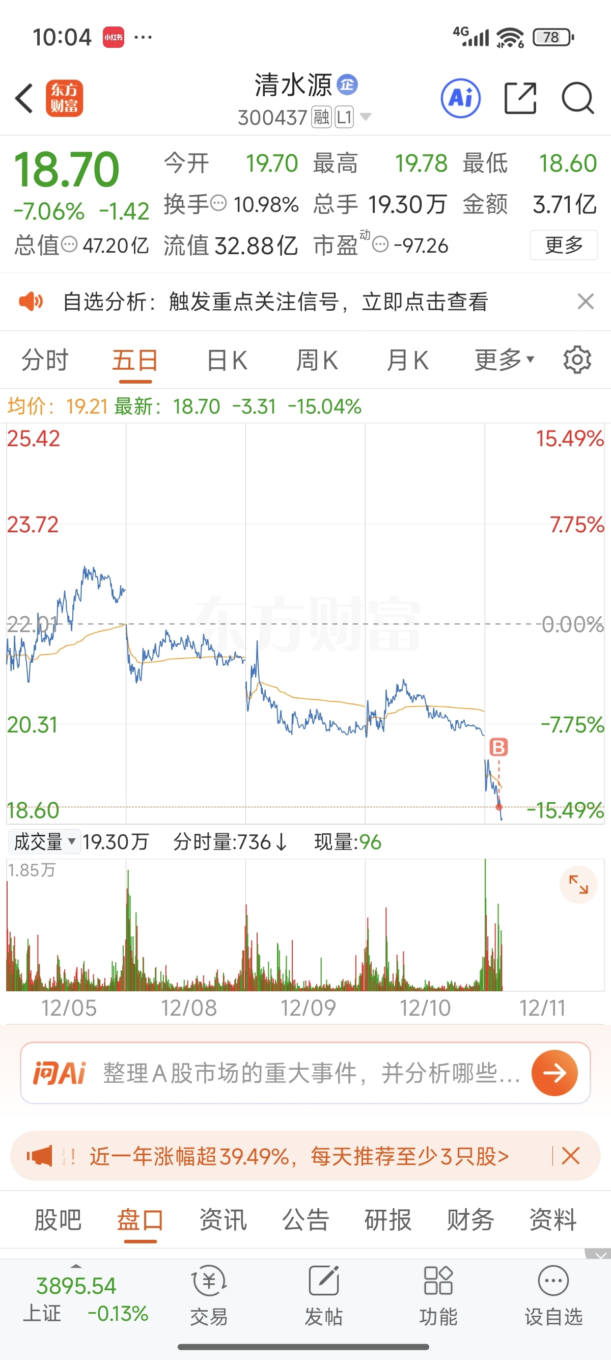 $清水源(SZ300437)$  全仓抄底失败,希望少跌点