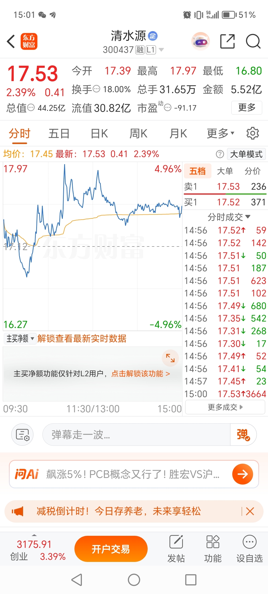 $清水源(SZ300437)$ 尾盘拉了,明天肯定吃大肉