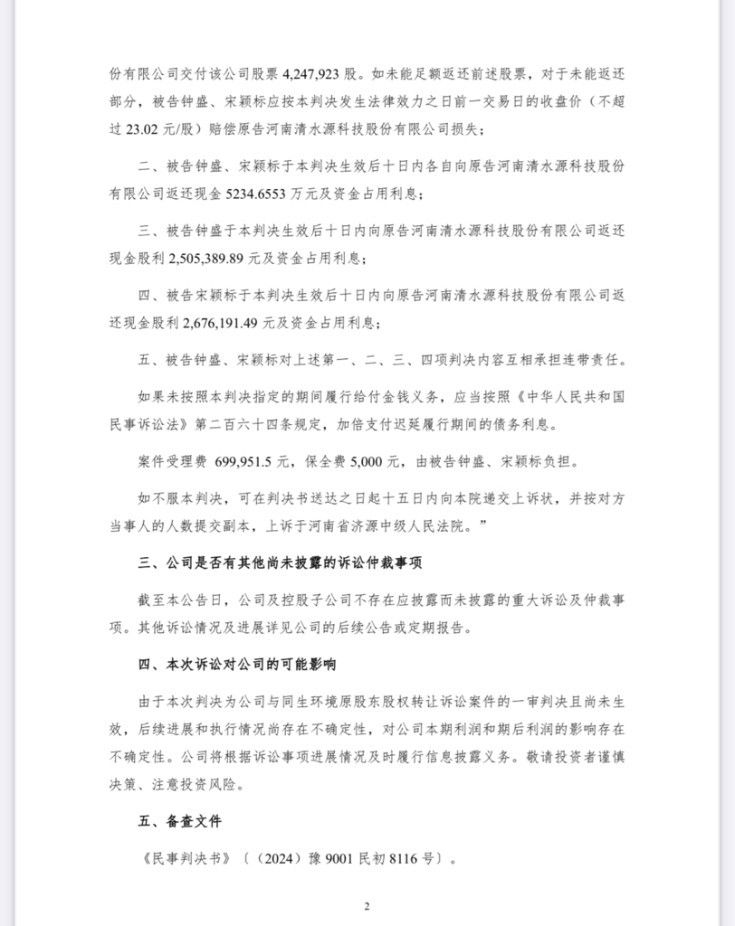 $清水源(SZ300437)$ 是这个一审胜诉的吧,维持原判,白赚1个多亿的净利润,不得2个涨停起步啊
