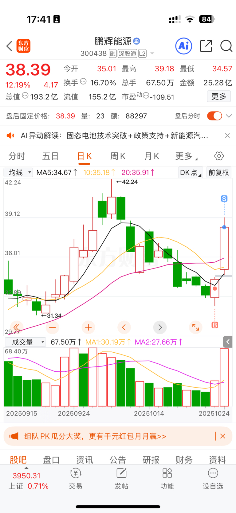 $鹏辉能源(SZ300438)$ 卖了总觉得卖飞了,不卖又总觉得下周生死难料。