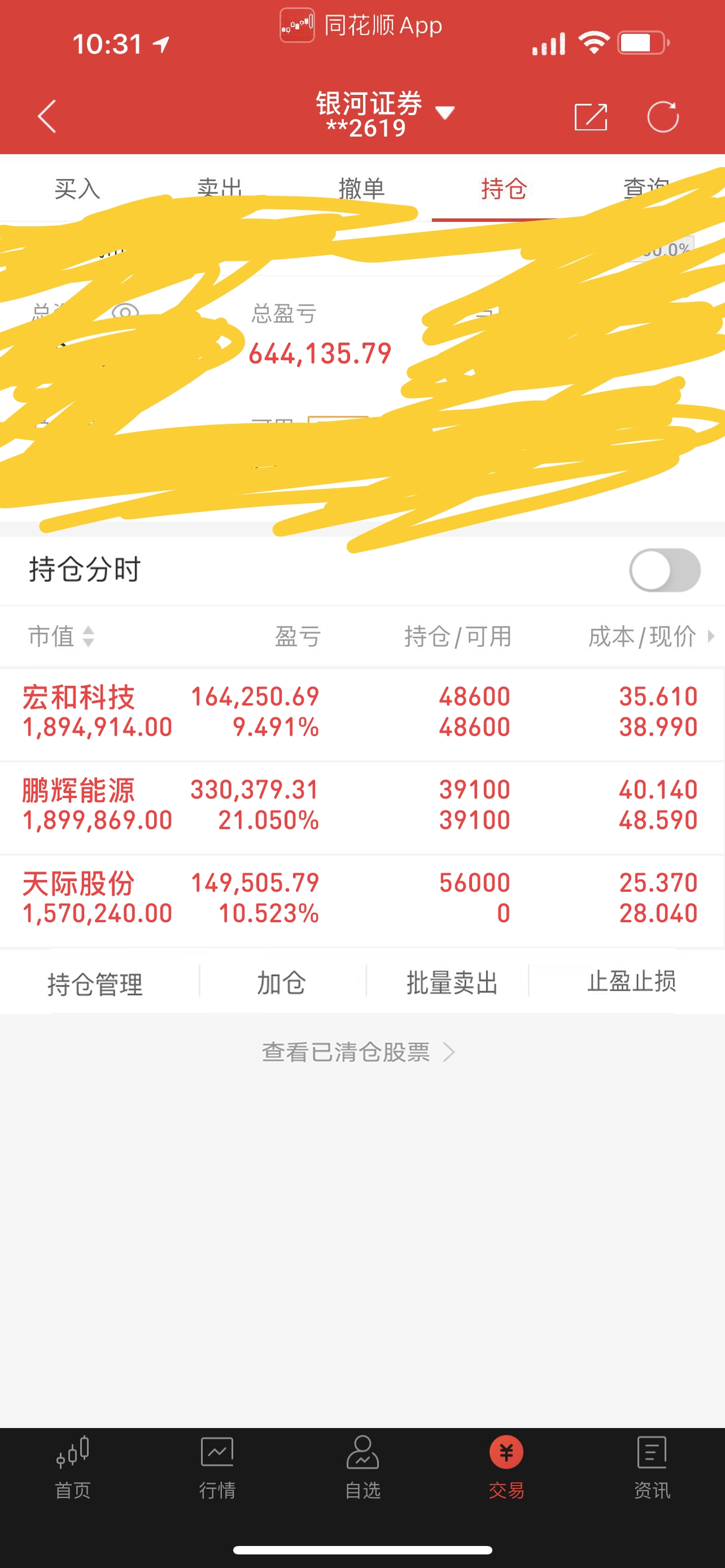 $鹏辉能源(SZ300438)$ 今日来更新一下,昨天下午新介入了鹏辉能源还不错现有21cm继续持有,宏和科技也继续在观望一下,上午新入手了天际股份。