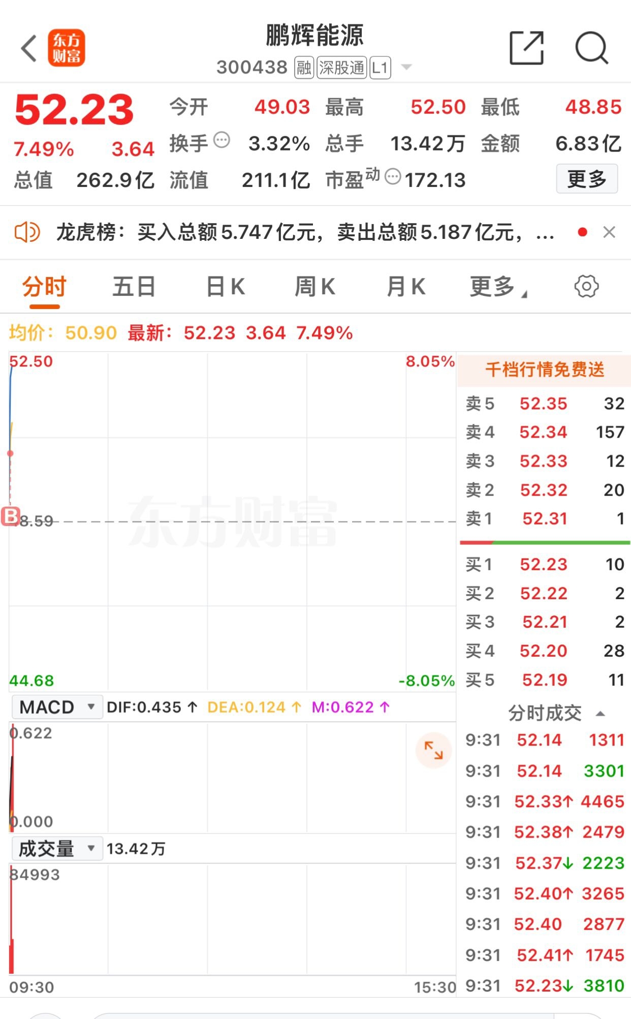 $鹏辉能源(SZ300438)$ 上#炒股日记# #强势机会# #投资干货#