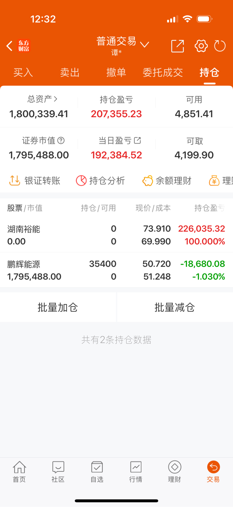 100万炒股的41天,今天行情还可以呀!#炒股日记# $鹏辉能源(SZ300438)$ $湖南裕能(SZ301358)$