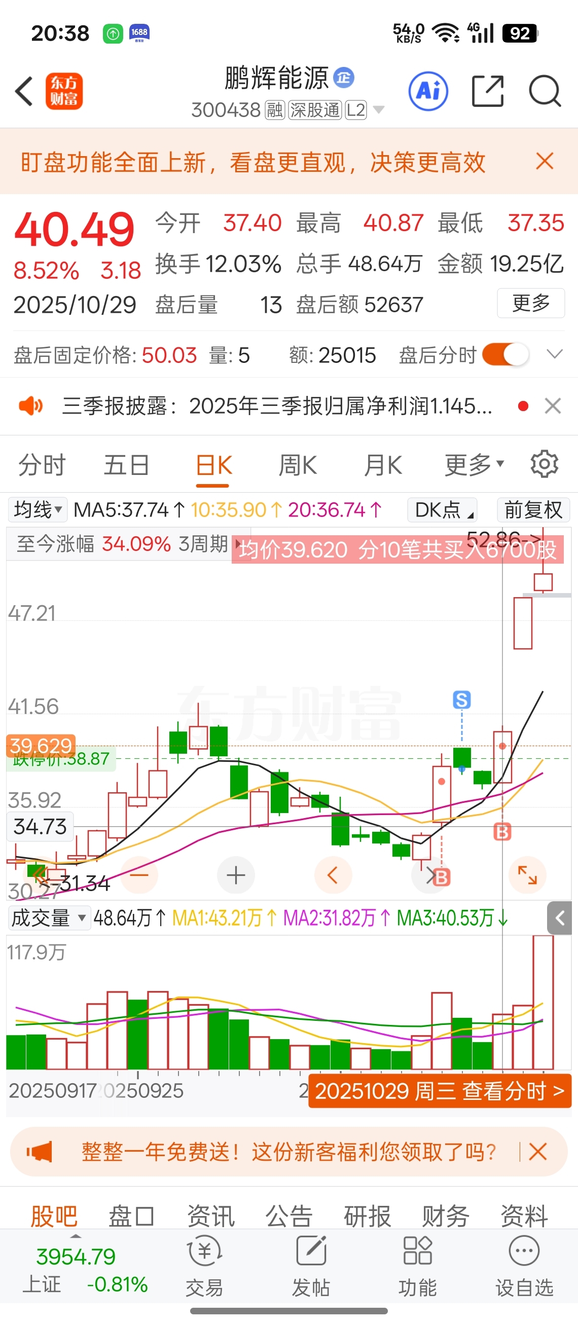 $鹏辉能源(SZ300438)$ 天量k线 看周一了周一觉得去留 反正这个位置个人观点不高