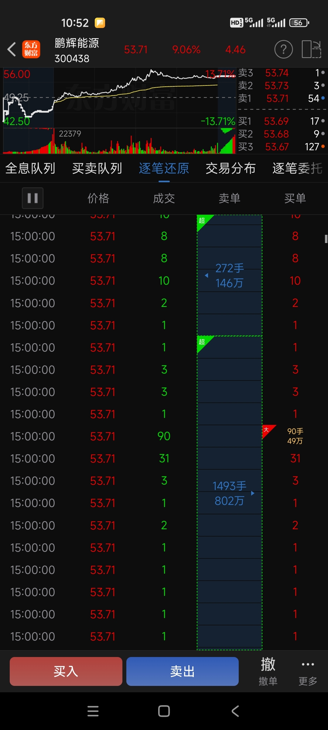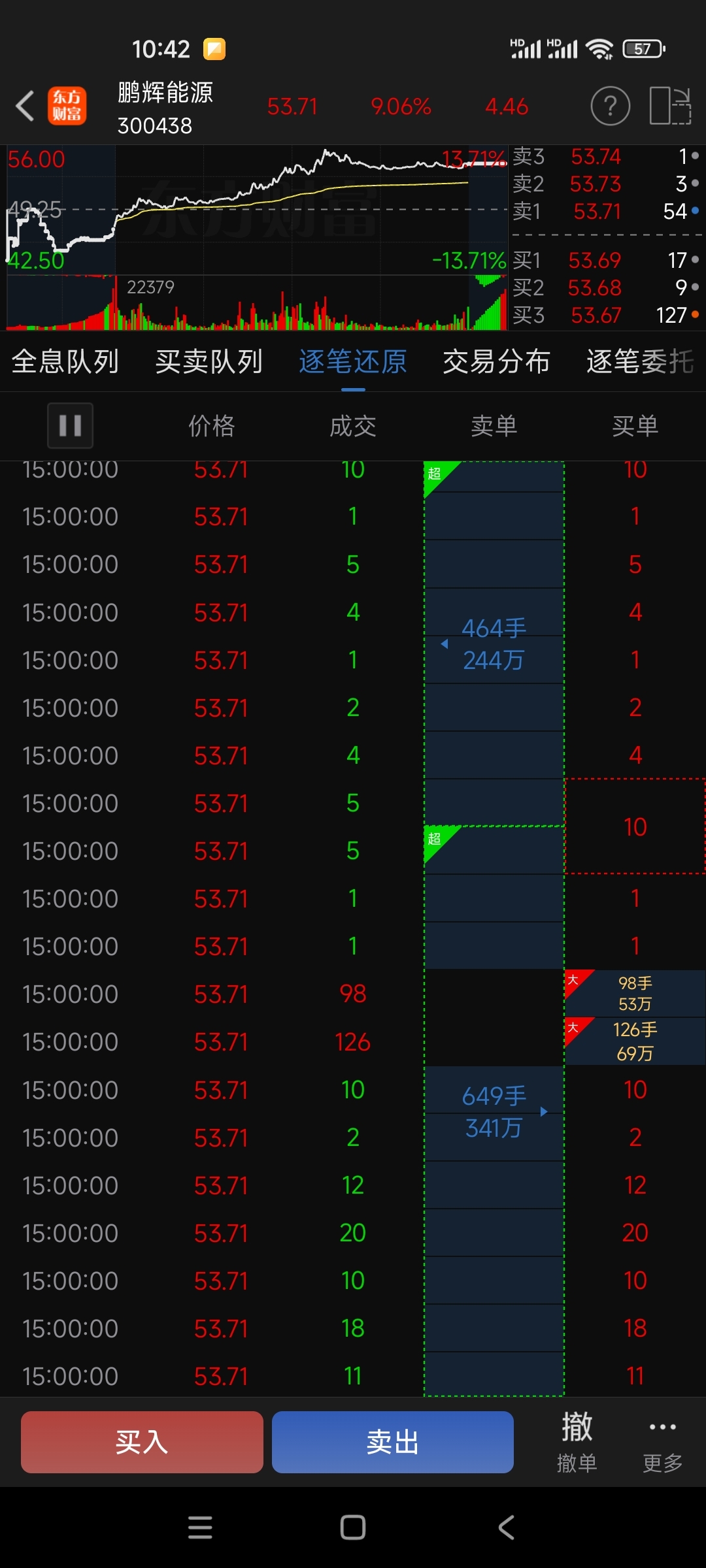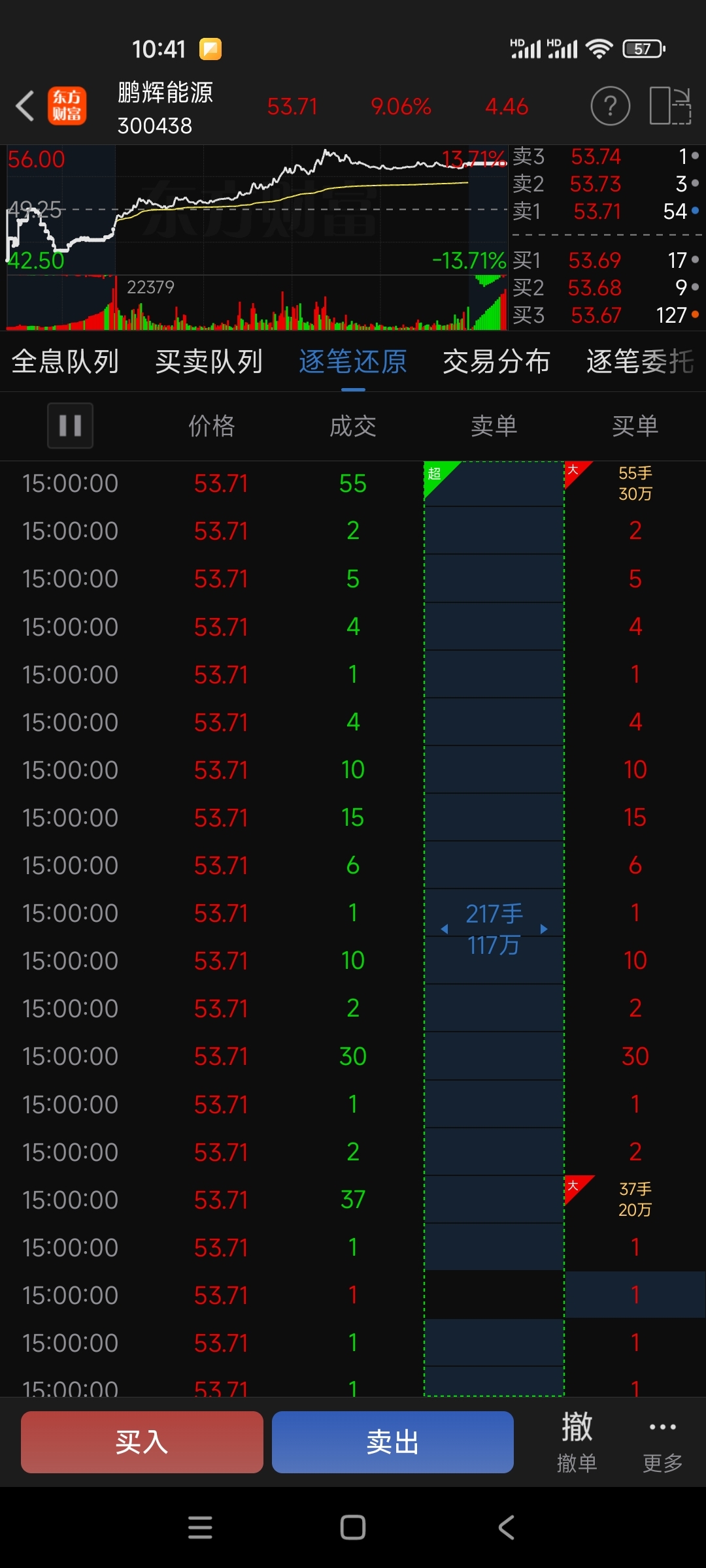 $鹏辉能源(SZ300438)$ 主力早盘吸筹拉升到高点一直卖出,尾盘也在卖出