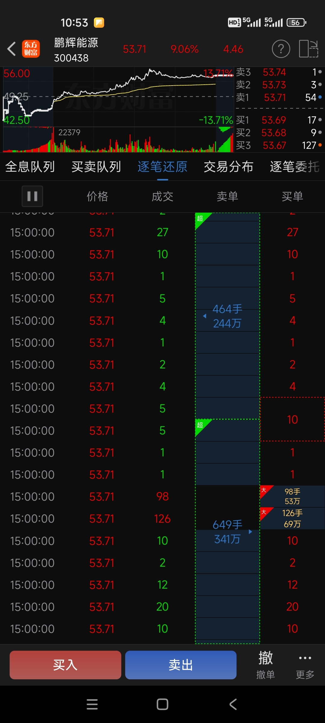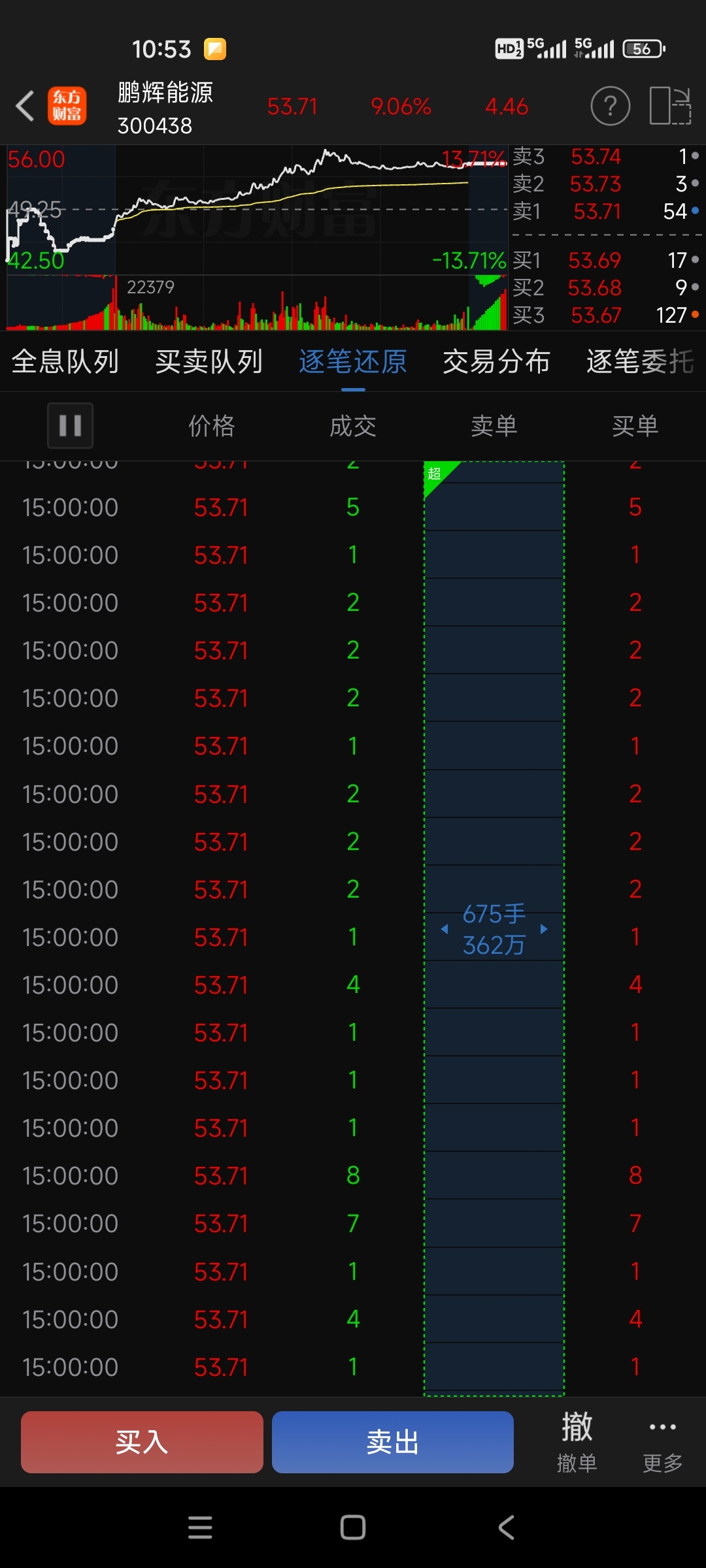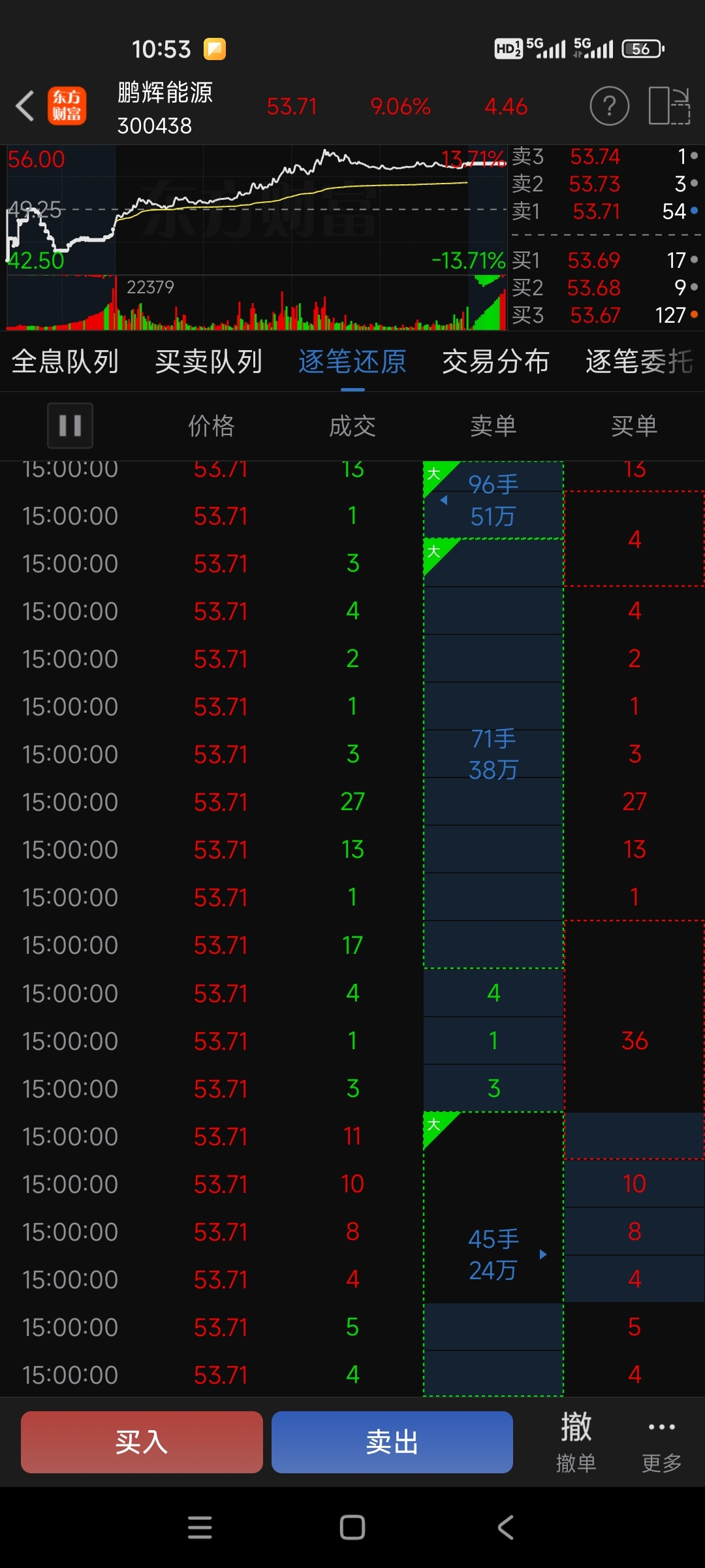 $鹏辉能源(SZ300438)$ 主力早盘吸筹拉升到高点一直卖出,尾盘也在卖出