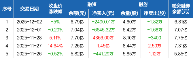 鹏辉能源:融资净偿还2490.01万元,融资余额6.79亿元(12-02)