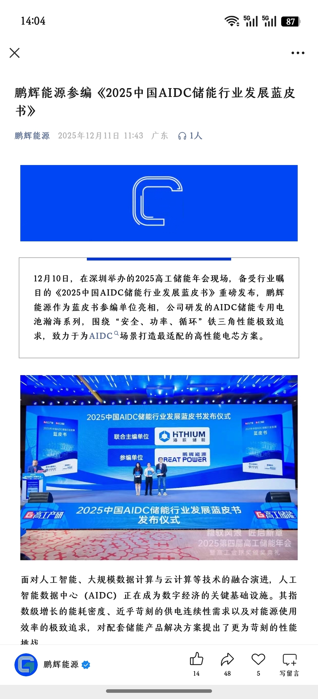 $鹏辉能源(SZ300438)$ 利好来了,老乡,别走啊