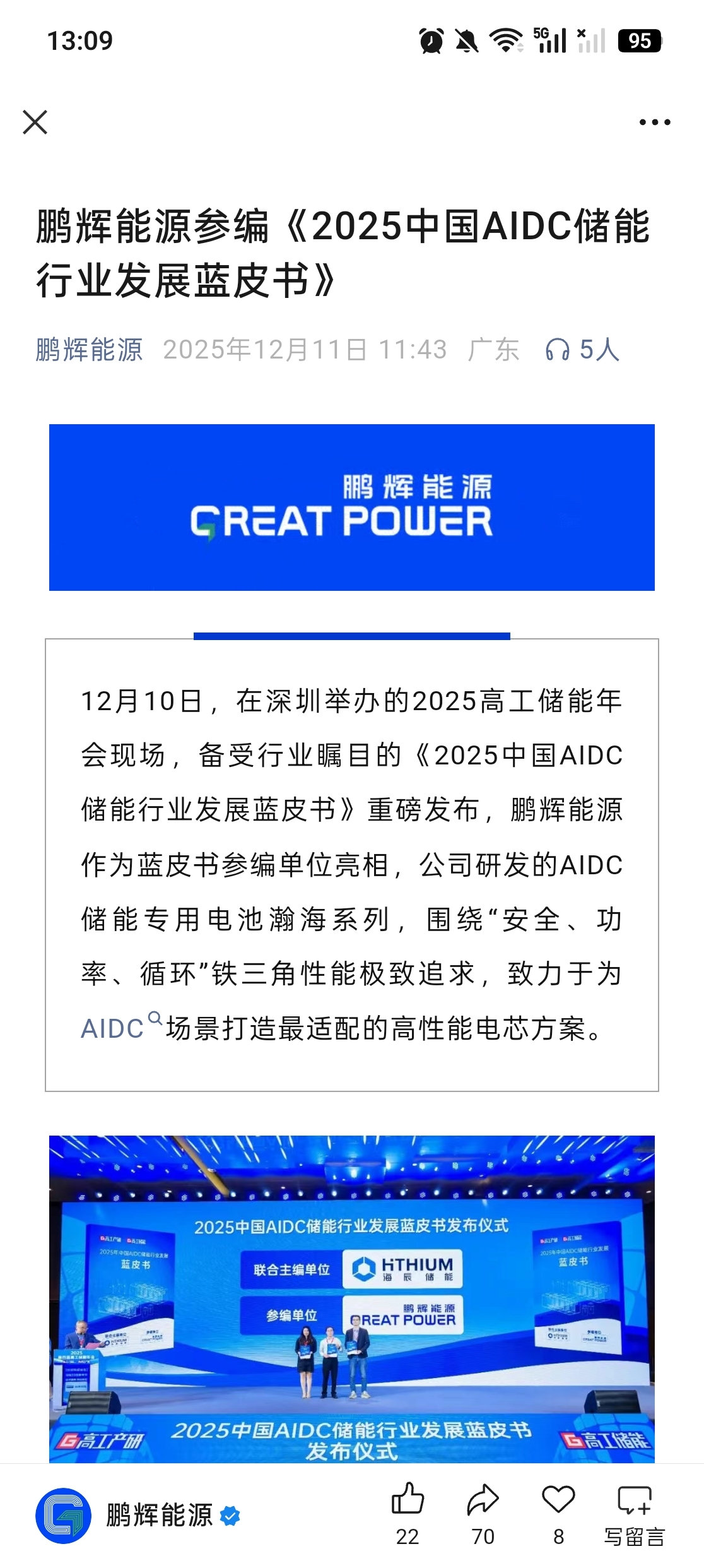 $鹏辉能源(SZ300438)$