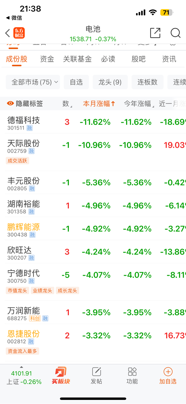 $鹏辉能源(SZ300438)$ 本月涨幅倒数第五,真是龙头啊