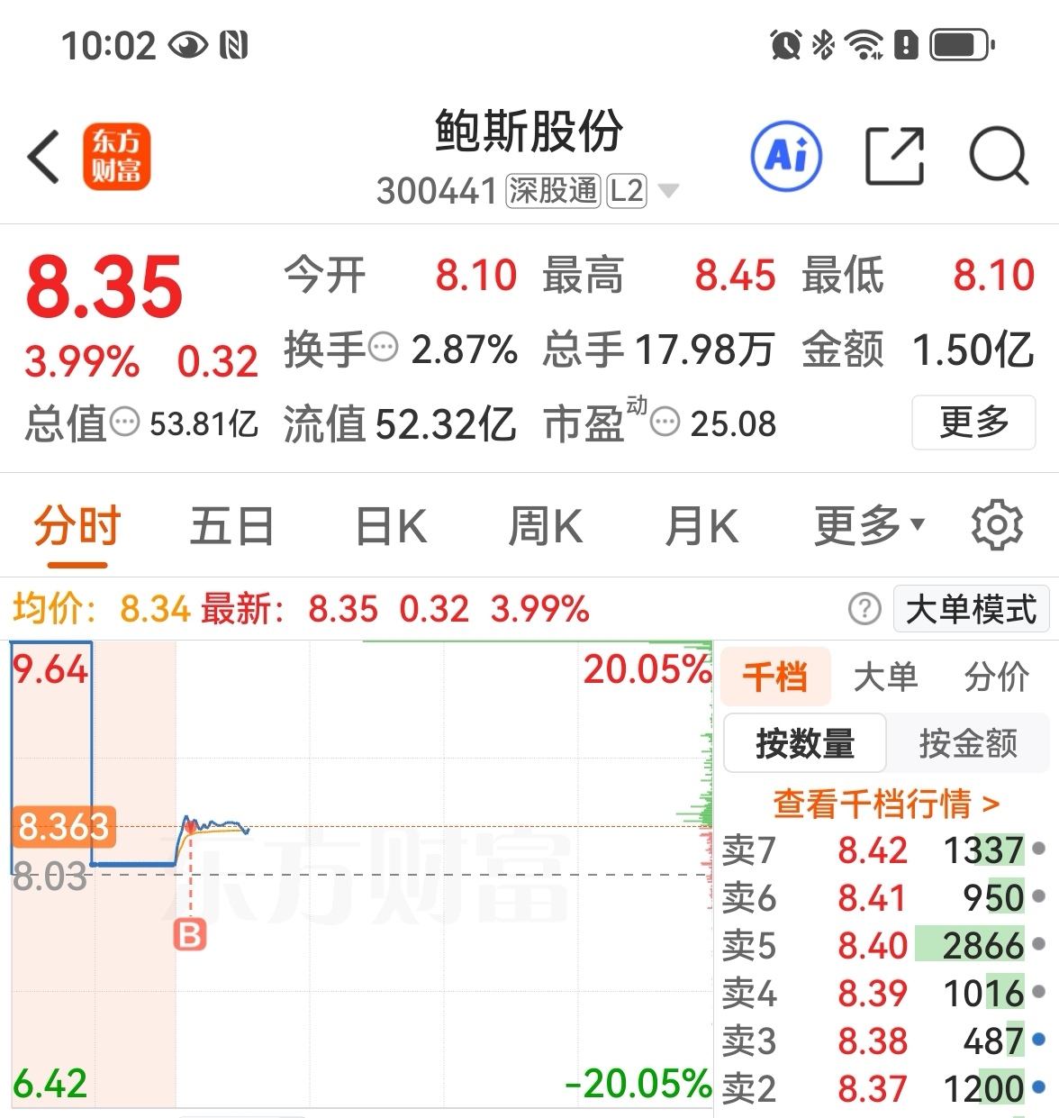 $鲍斯股份(SZ300441)$ 不好意思,我一买就不涨。