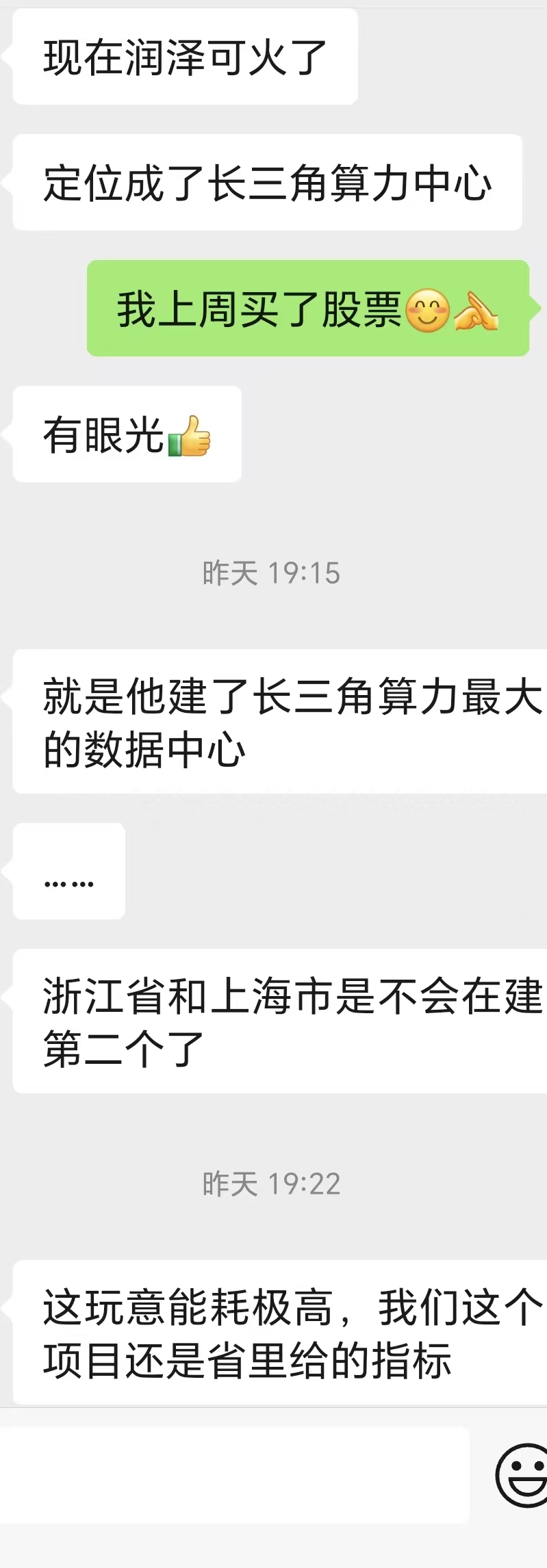 好多人哭爹喊娘,其实,就是跌了认为肯定是有雷,只是还没出。但半年报消息,润泽上架率超过90%,网上文章是95%(机构调研具体数据),价格上润泽全部是长期协议,能什么雷?现在就是年前一波,价格越低、筹码收的越多、磨得时间越久,拉起来越安全,这如果不明白炒啥股,没刷牙说话的拉黑。贴个图,给大家点信心