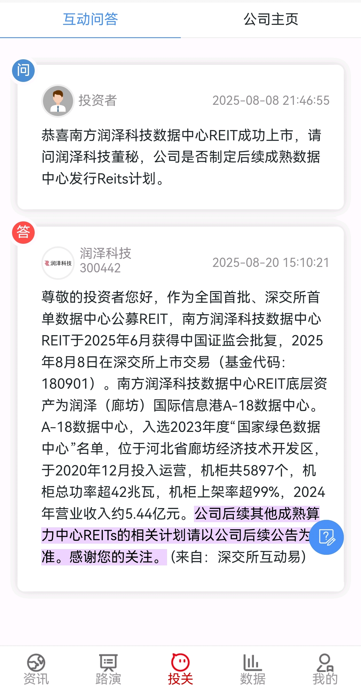 $润泽科技(SZ300442)$