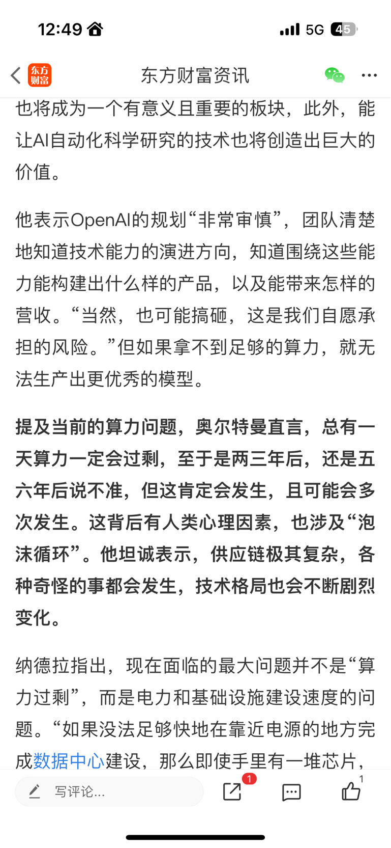 $润泽科技(SZ300442)$ 算力一定会过剩。 这句话本质是,算力绝对会形成泡沫。 未来空间还非常大,今天看,算力基建仅仅是开始