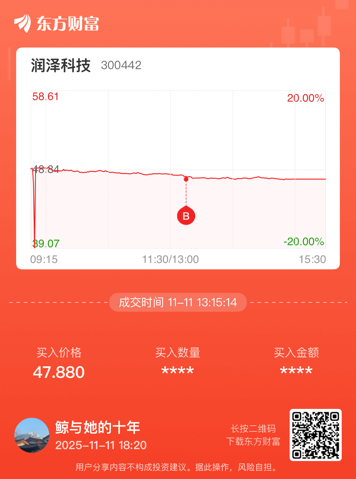 $润泽科技(SZ300442)$ 明天再跌又有很多割肉盘了,舒服