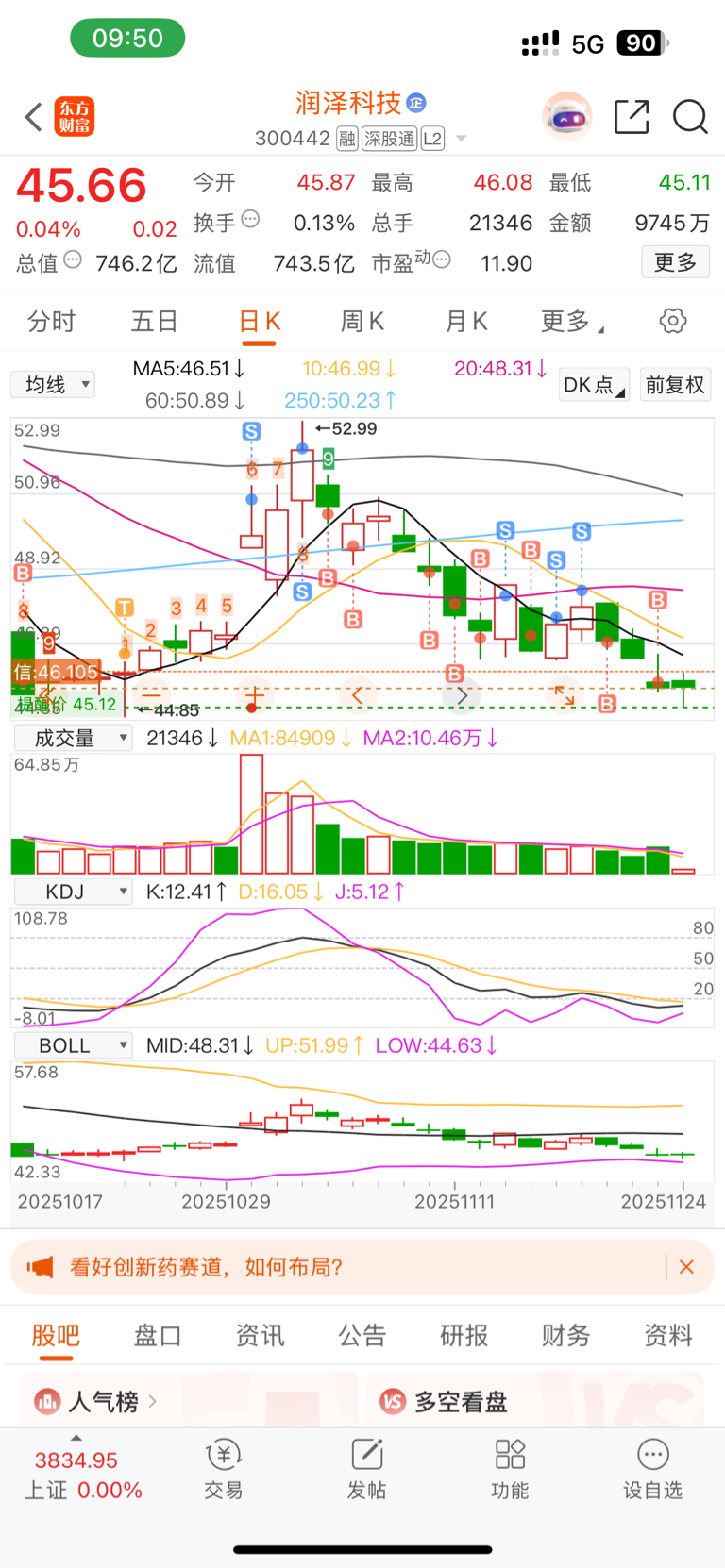 $润泽科技(SZ300442)$ 底部揉搓线走势看涨信号
