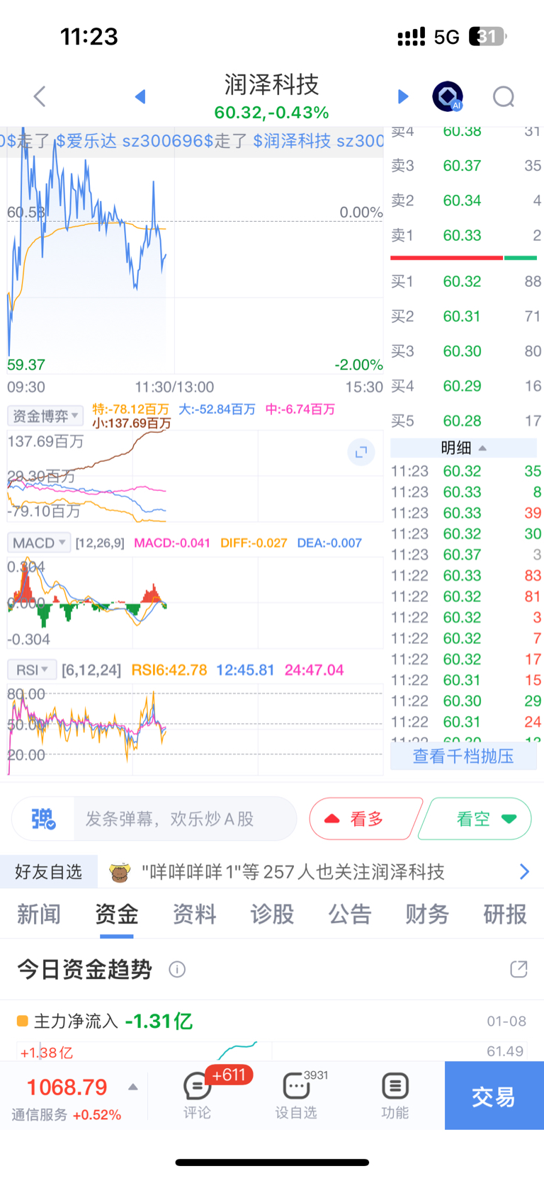 $润泽科技(SZ300442)$ 走了,走了。 出货了 ,出大货了, 低于50元再进, 大盘要回调了