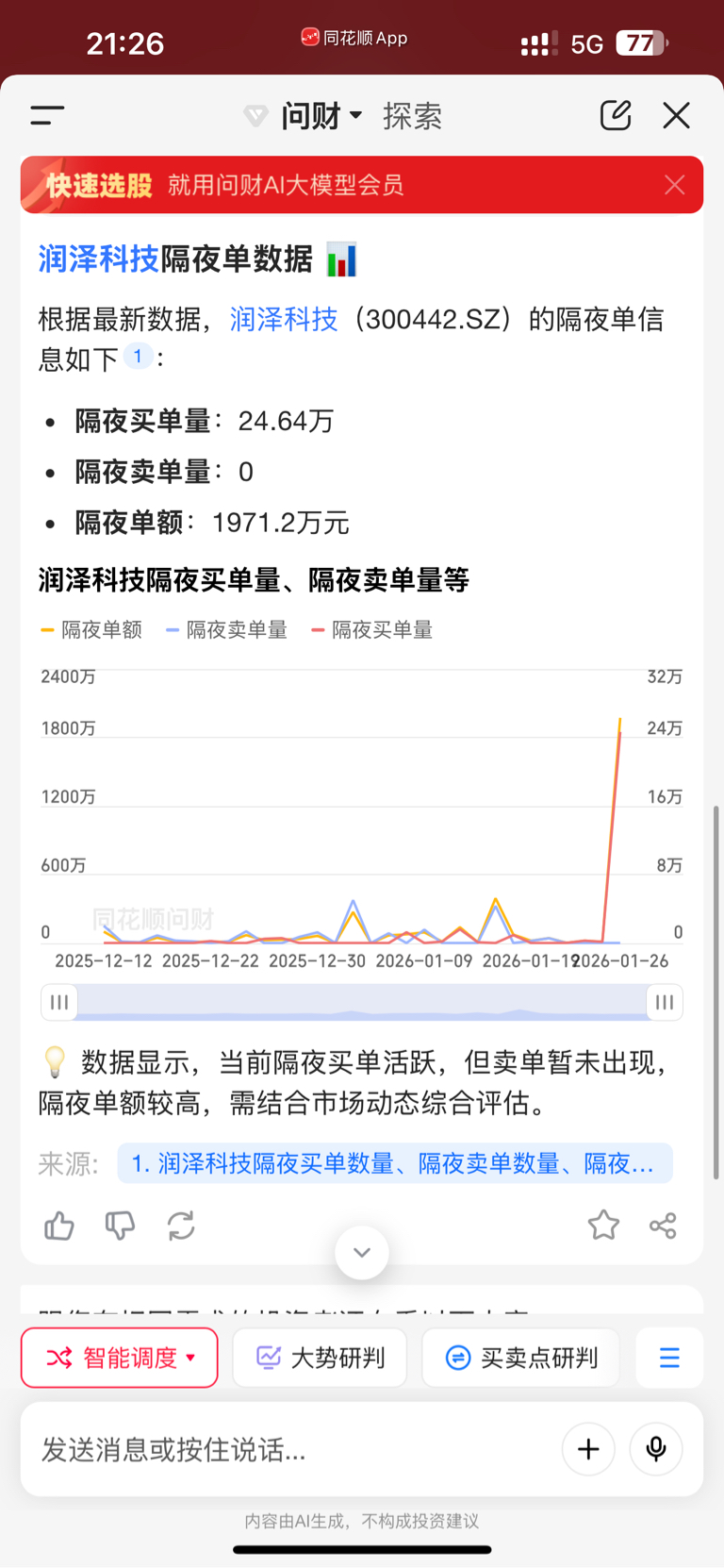 $润泽科技(SZ300442)$ 2000w隔夜单?有什么说法