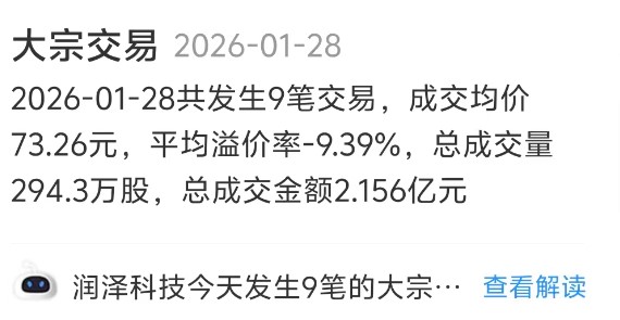 今天9笔大宗交易,成交 2.156亿