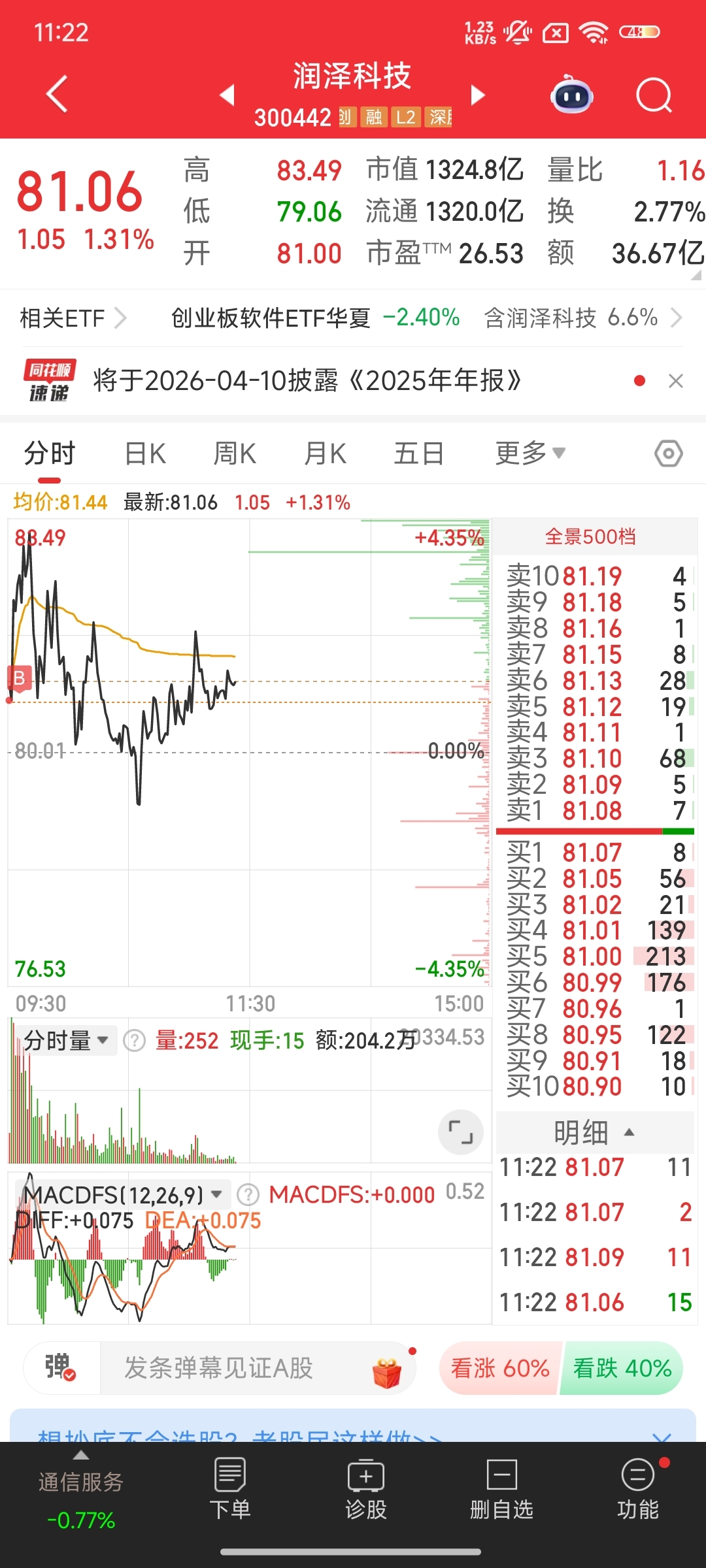 $润泽科技(SZ300442)$ $志特新材(SZ300986)$ 今天志特新材清仓了,润泽科技加满了