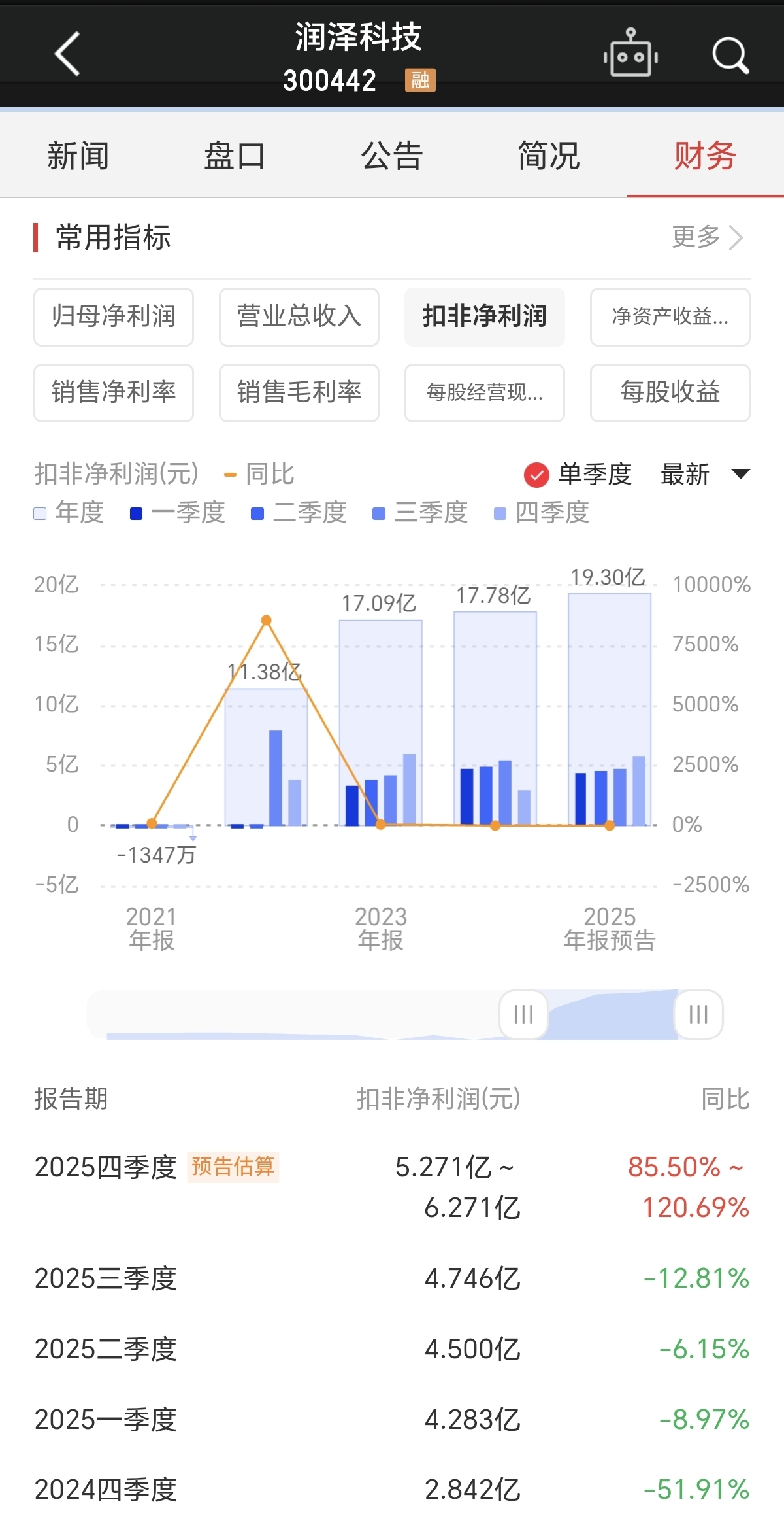 $润泽科技(SZ300442)$ 第四季度扣非净利润在5.27亿~6.27亿。同比最高达120%。环比增长超30%