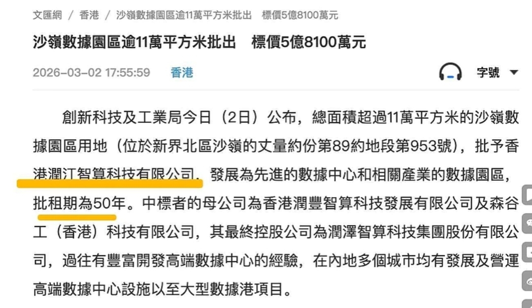 $润泽科技(SZ300442)$ 中标香港算力,三年投资238亿。