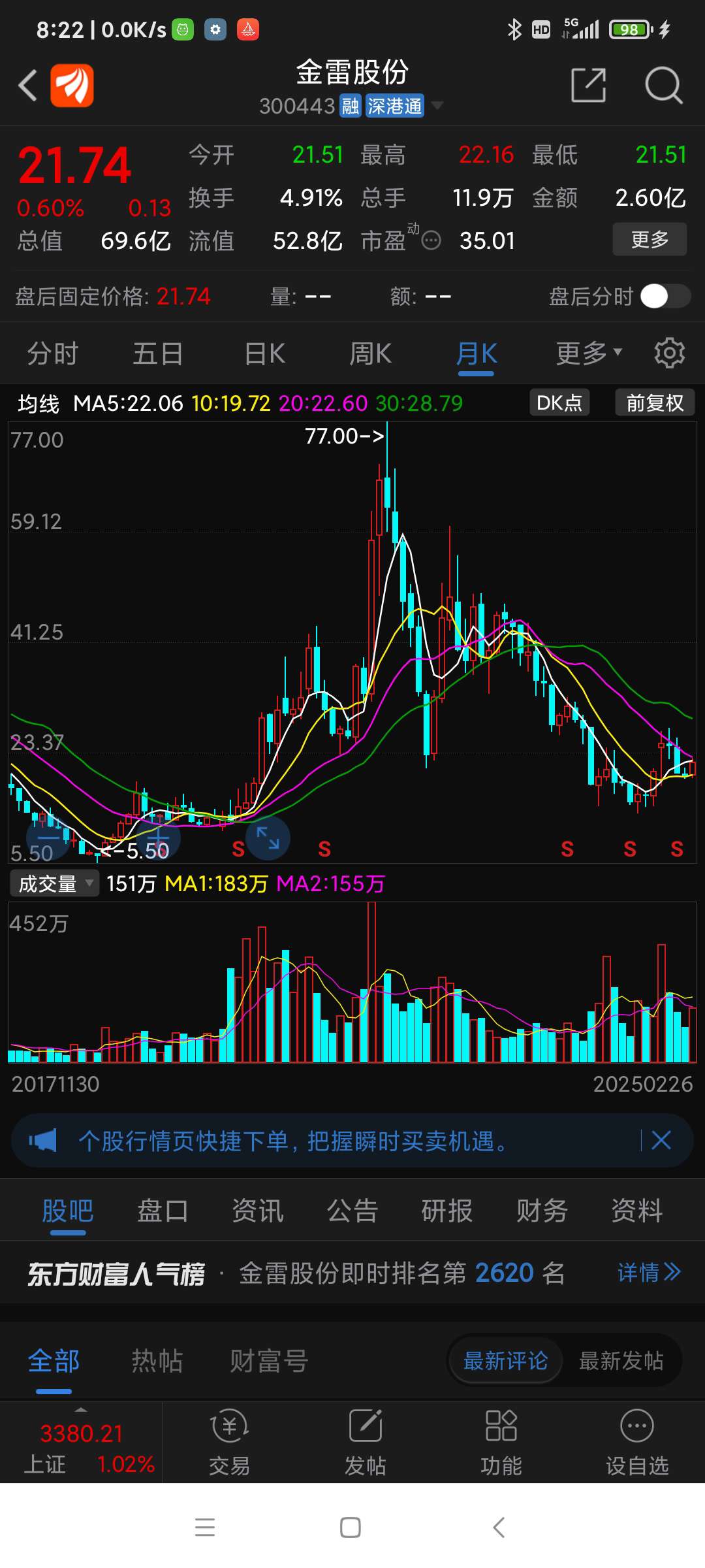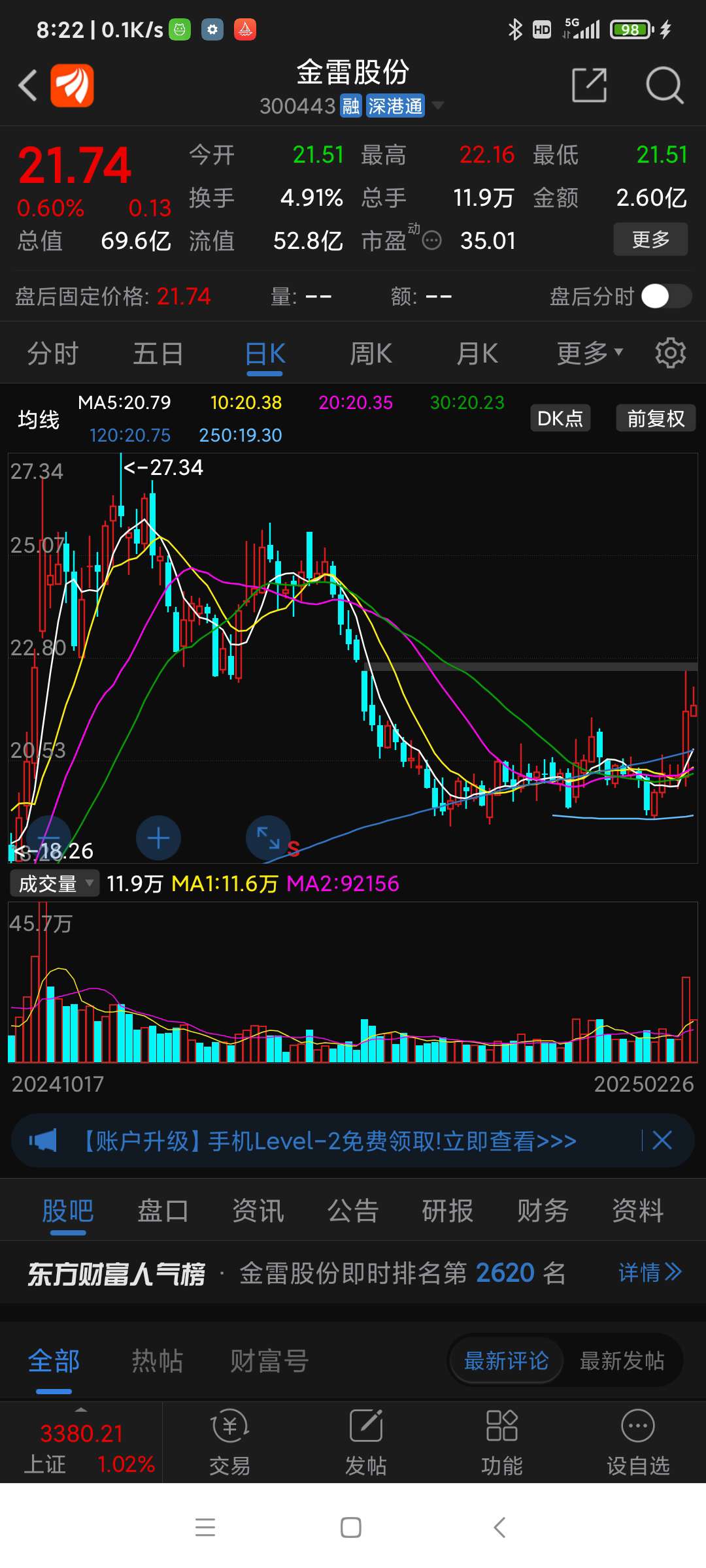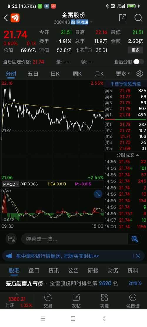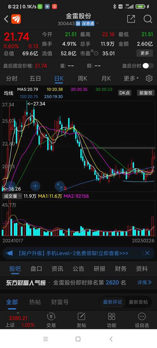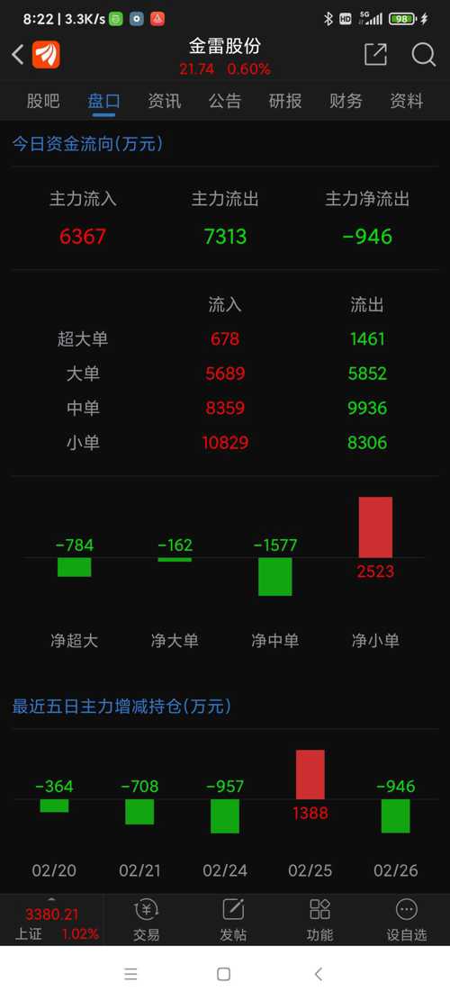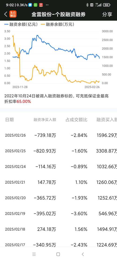 金雷股份昨日(250226三)走势