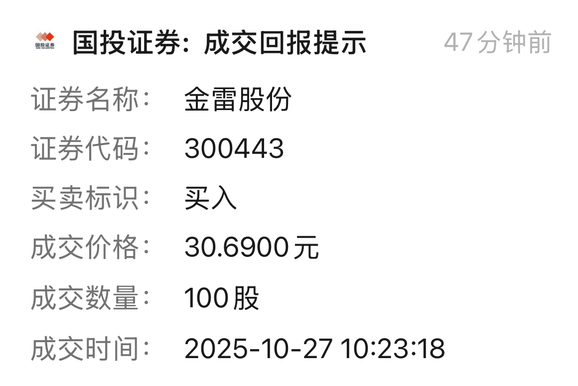 $金雷股份(SZ300443)$ 没骗你们哦真的是一手