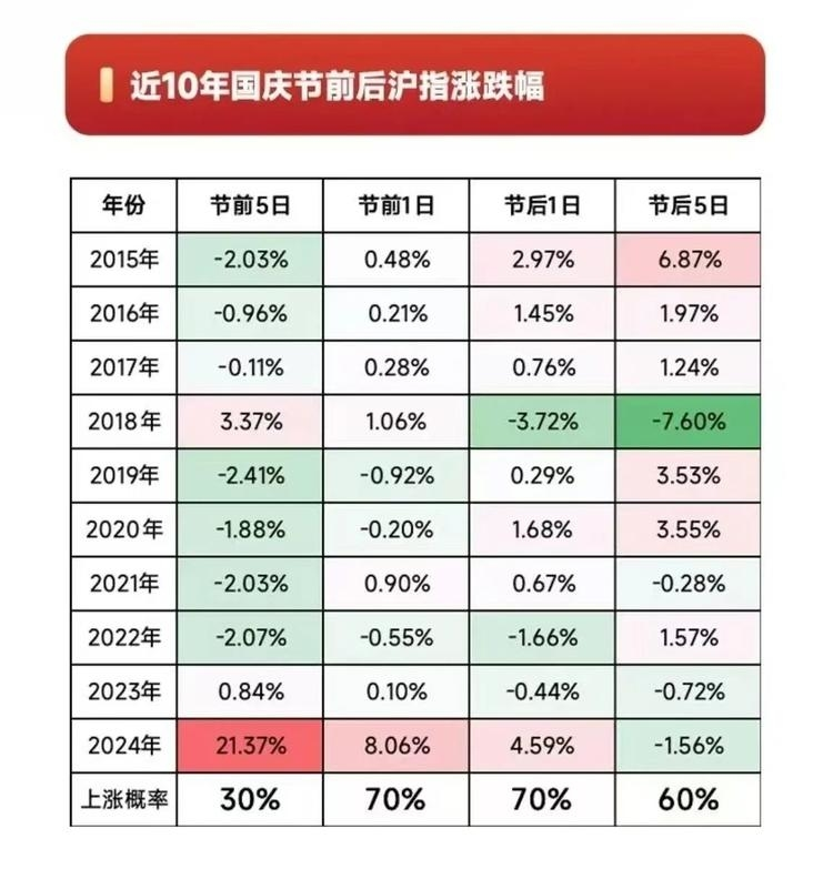 近十年,节前一日上涨概率70%,节后一日上涨概率也是70%,拿好了兄弟们