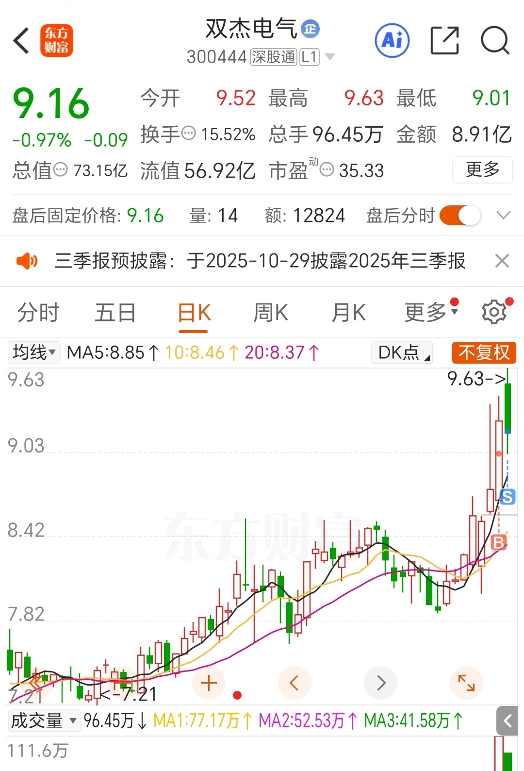 $双杰电气(SZ300444)$ 清仓了,过几天再来吧